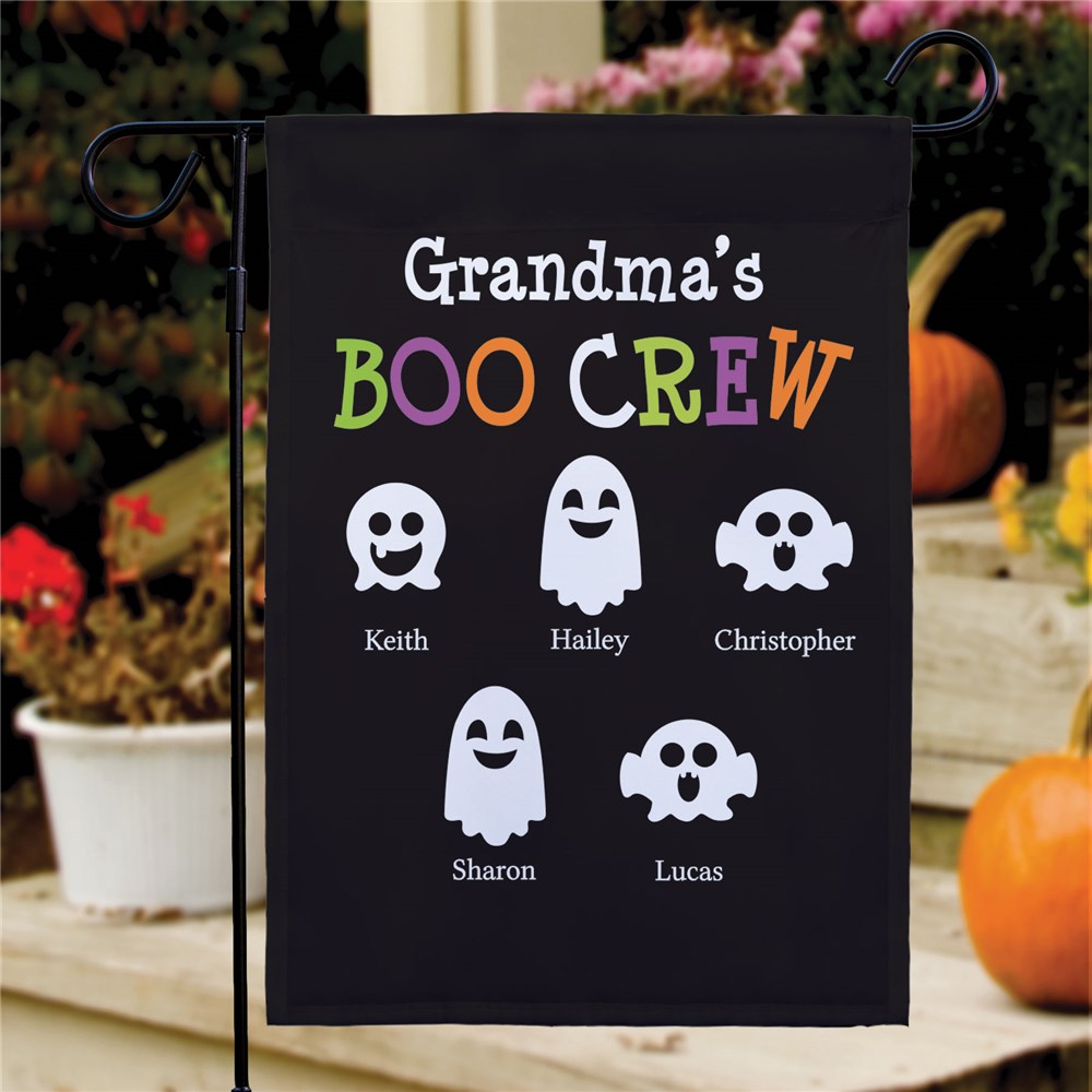 Top off your Halloween decorations with our Personalized Boo Crew Garden Flag!