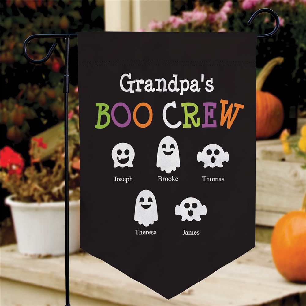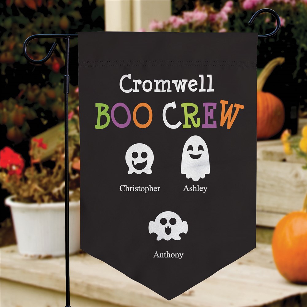 Top off your Halloween decorations with our Personalized Boo Crew Pennant Garden Flag!
