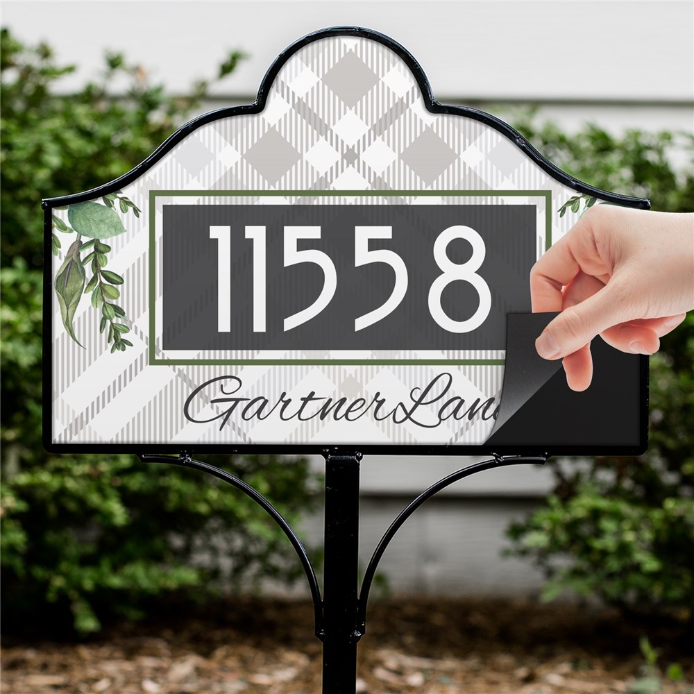 Our Personalized Botanical Plaid Magnet Yard Sign Set will match any outdoor home decor.