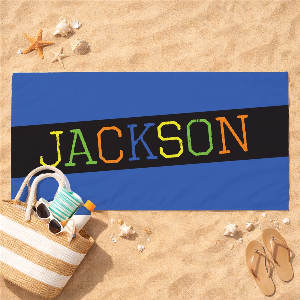 Personalized Boys Multi Color Name Beach Towel