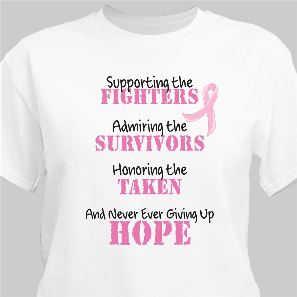Support the fighters, admire the survivors and honor the taken each time you wear your Breast Cancer Awareness Personalized T-Shirts. With this Awareness Personalized Shirt for breast cancer, you will join millions of people show their support for those suffering with this condition and give them courage to never give up hope. Each Breast Cancer T-Shirt is an excellent choice for any upcoming breast cancer awareness walk event. Our Fighting the Cause Awareness T-shirt is a 100% cotton T-Shirt, machine washable in adult sizes S-3XL. Each shirt supports those suffering from Breast Cancer and helps spread awareness in your community.