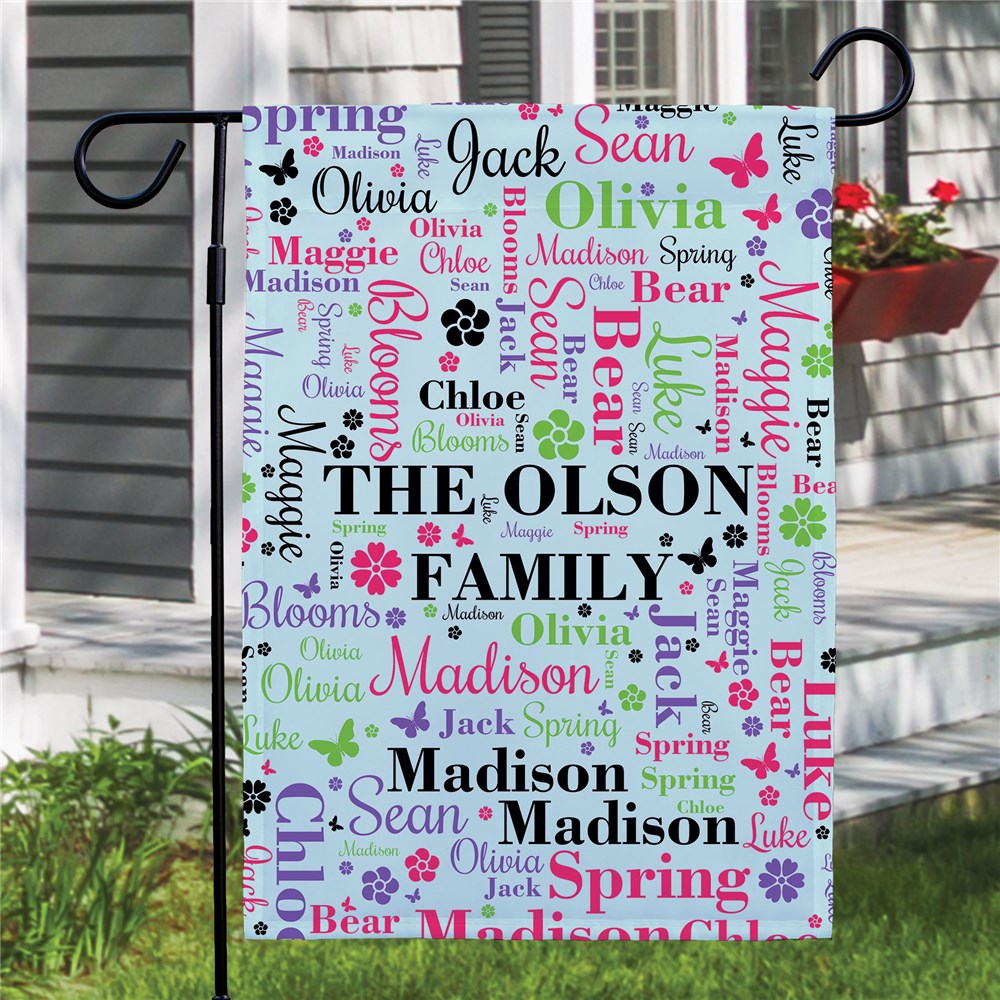 Add a pop of color to your yard with our Personalized Bright Spring Word Art Garden Flag.