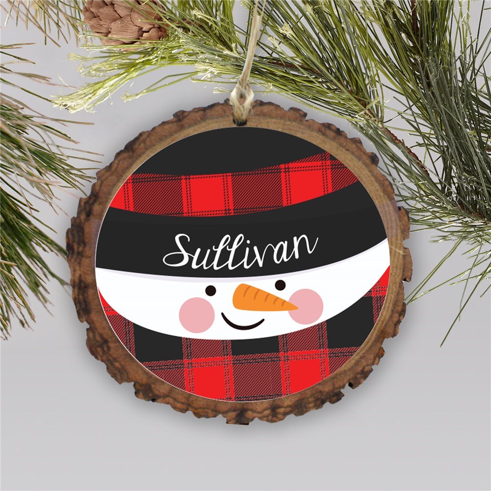 Display our adorable Personalized Buffalo Plaid Snowman Barky Ornament on your tree this year, and spread the Christmas joy.
