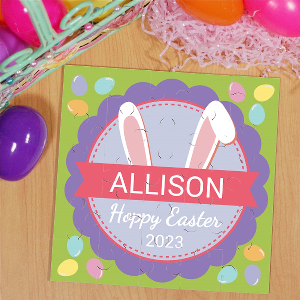 This personalized puzzle makes a fun addition to any Easter basket. Perfect for a little boy or girl to enjoy! Personalize these great Easter gifts for kids with any design color, any name, any one line message and any year to create a fun gift your little one's will enjoy.