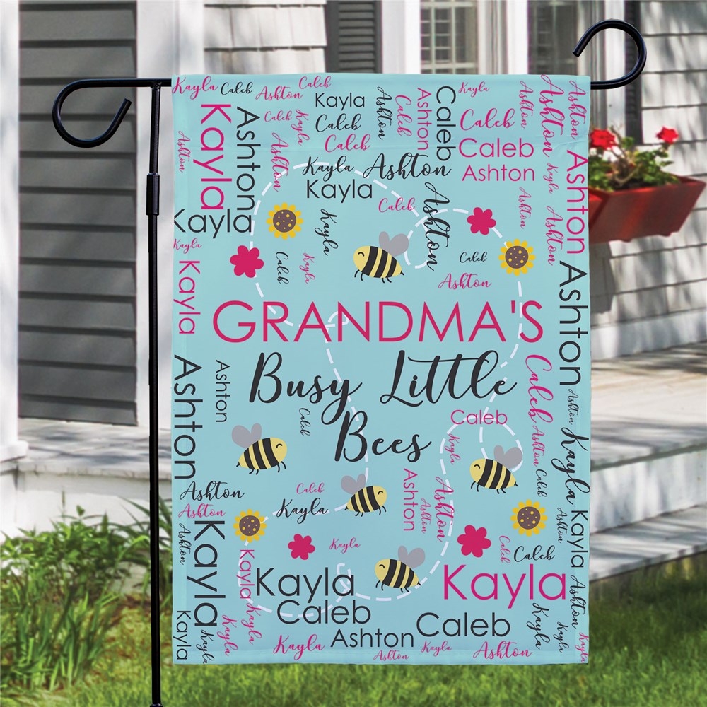Our Personalized Busy Bees Word Art Garden Flag will make the perfect addition to Grandma's yard or garden this spring!