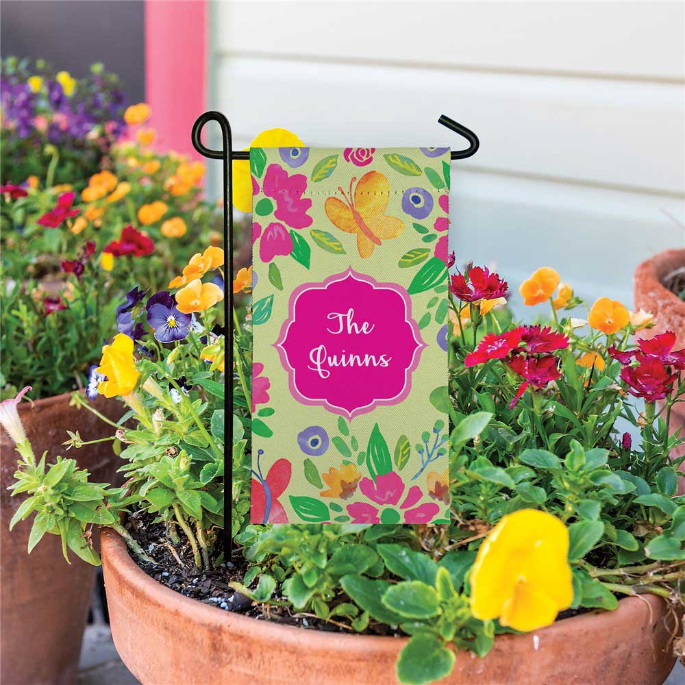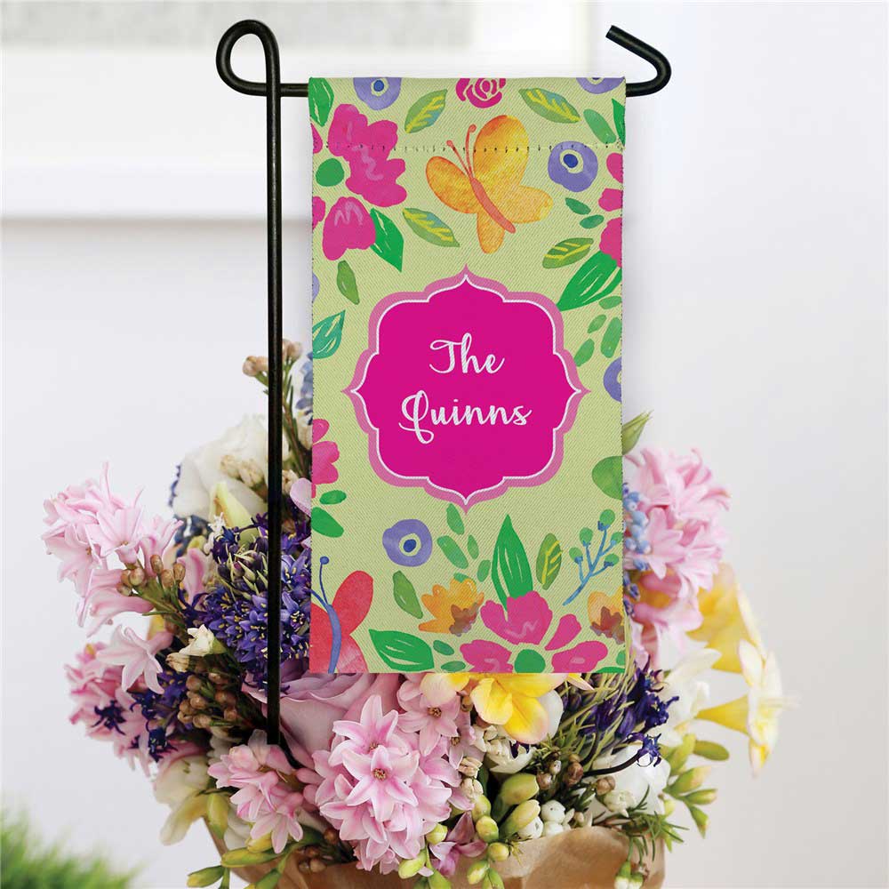 Spice up your garden for summer with our Personalized Butterflies And Flowers Mini Garden Flag.