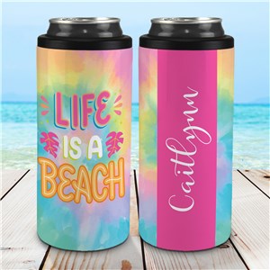 .Personalized Tie Dye Pastel Slim Can Cooler