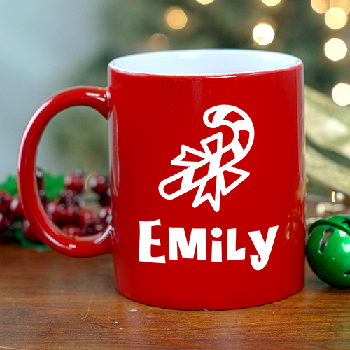 The holiday season will be extra special when sipping fresh hot chocolate or coffee from this personalized candy cane mug with your name. These festive Personalized Christmas Mugs make great gifts, and each one will be personalized with any name up to 16 letters! Our personalized ceramic candy cane mug holds 11 fluid ounces and features an extra wide grip handle for even more comfort.