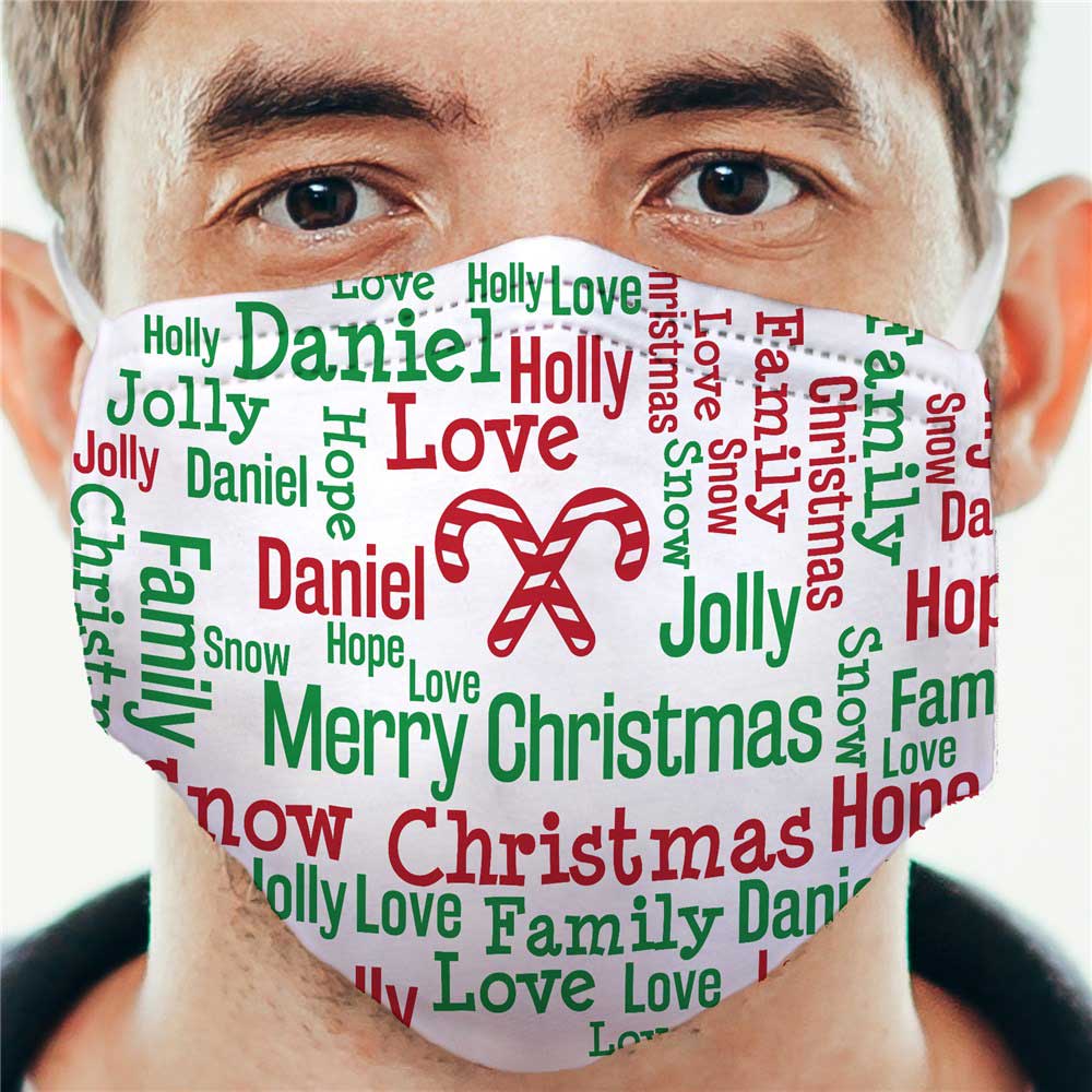 Celebrate Christmas safely this year with our Personalized Candy Cane Word Art Face Mask.