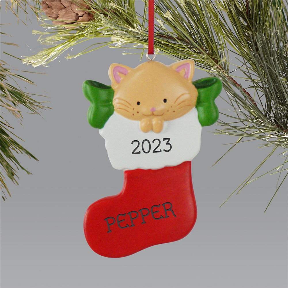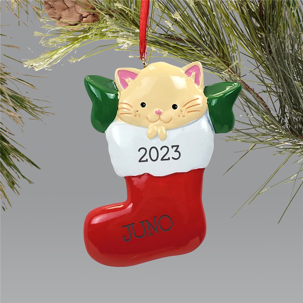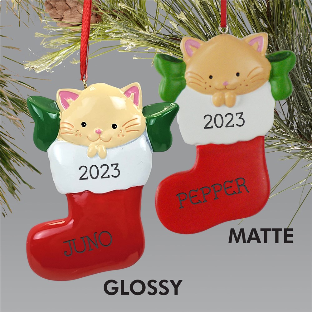 Our Personalized Cat Stocking Christmas Ornament is adorable ornament for your kitty!