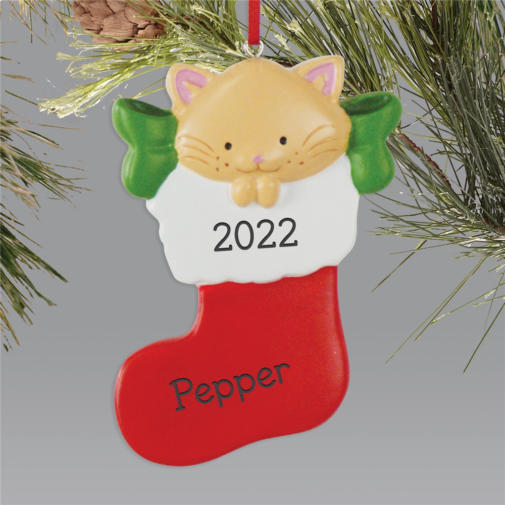 Our Personalized Cat Stocking Christmas Ornament is adorable ornament for your kitty!
