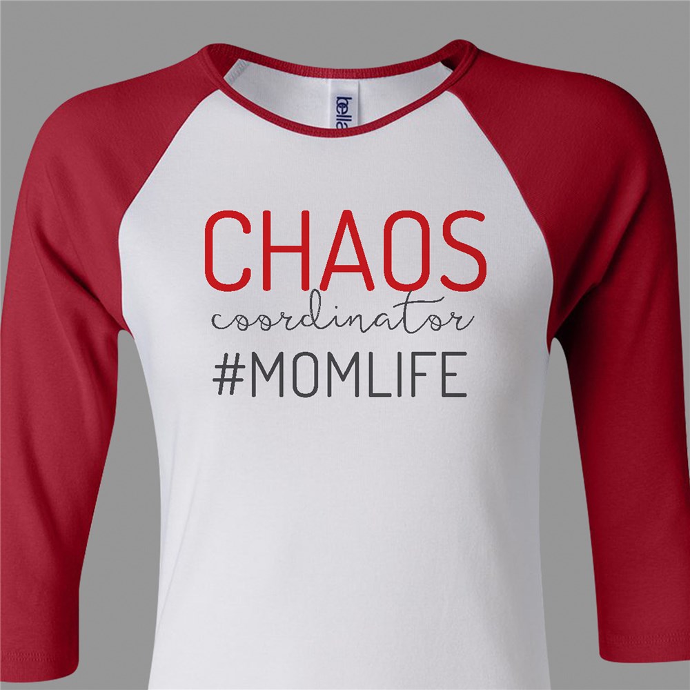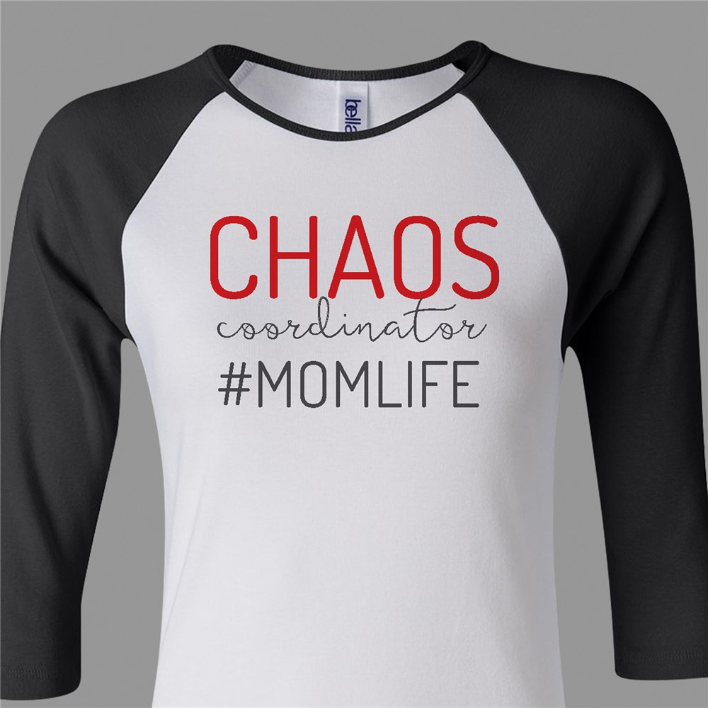 Moms deserve an award for dealing with all of the chaos, or at least an adorable raglan shirt! This Personalized Chaos Coordinator women's raglan shirt can be customized with any custom message line, hashtag anything you like.