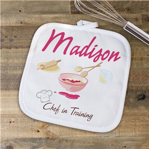 Getting to cook in the kitchen is a big deal for kids. Make their experience even more special by presenting them with their very own personalized Chef in Training kid's apron. This personalized chef apron for kids will be customized with any name up to 12 letters. Our kids apron personalized with name measures 20" x 24", is machine washable and will be treasured even when your child is no longer just in training.
