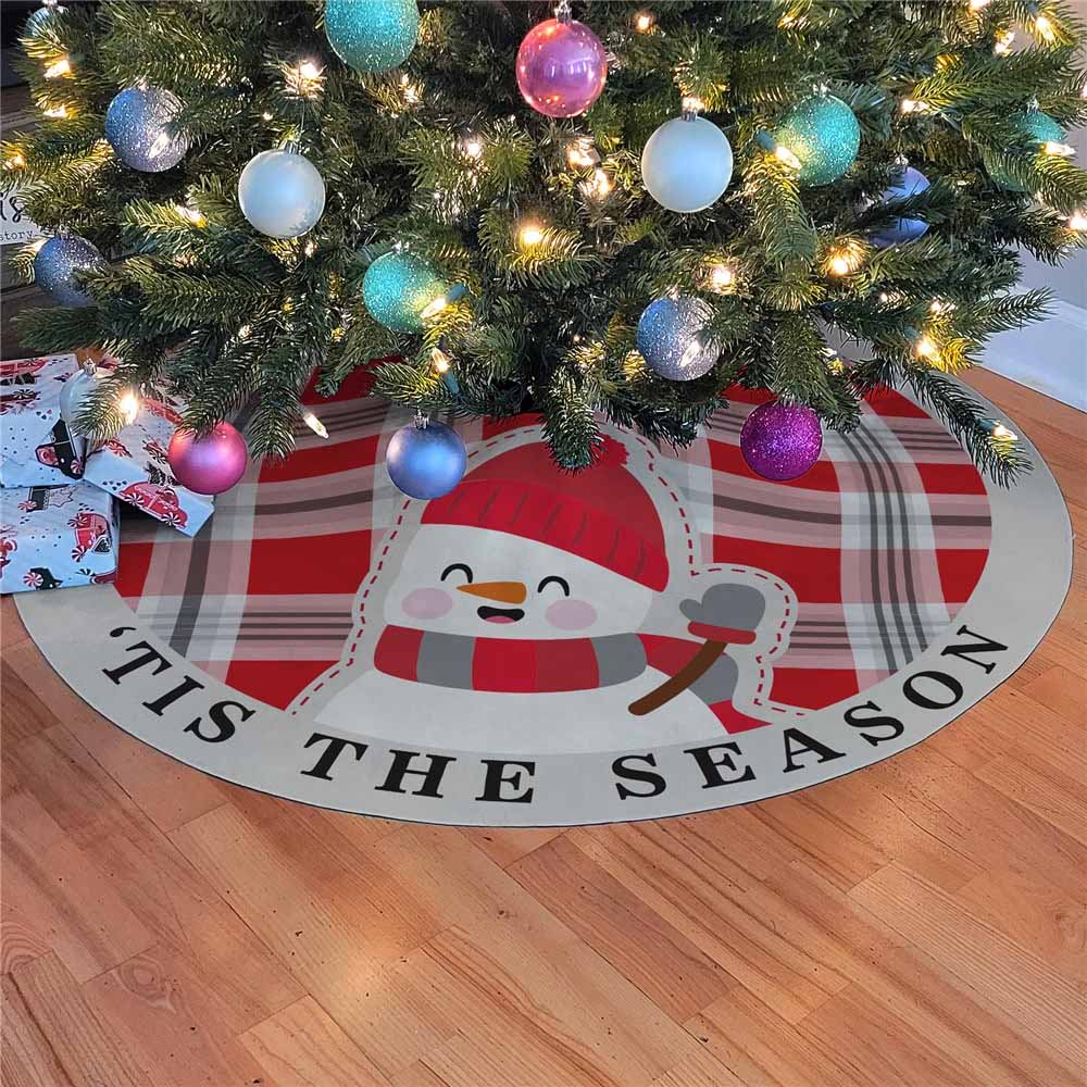 Give your tree a cute and cheery addition with our Personalized Christmas Character Plaid Christmas Tree Skirt!