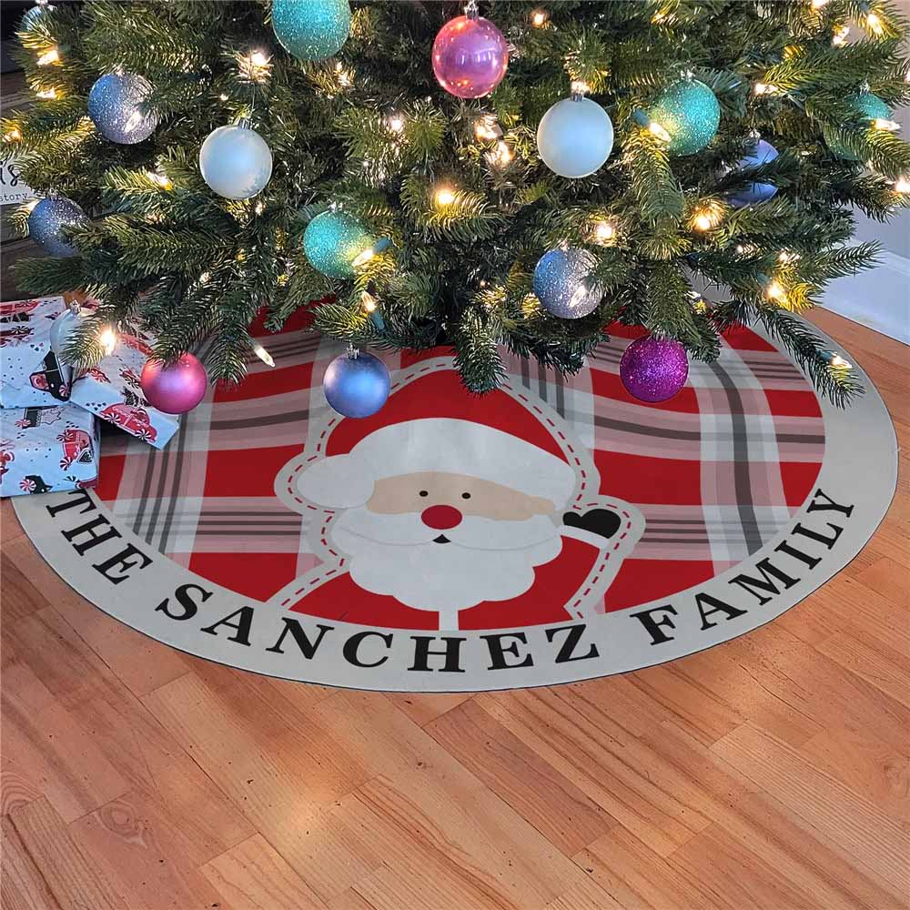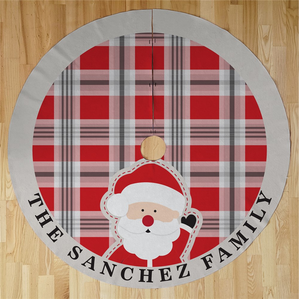Personalized Christmas Character Plaid Christmas Tree Skirt