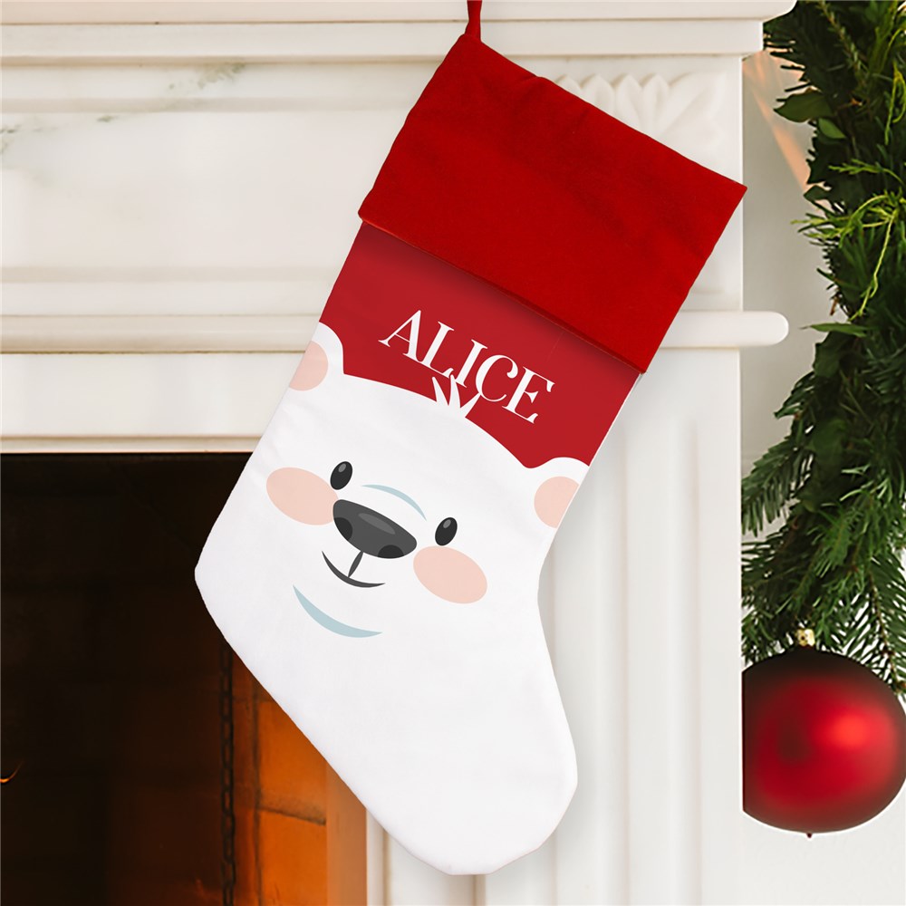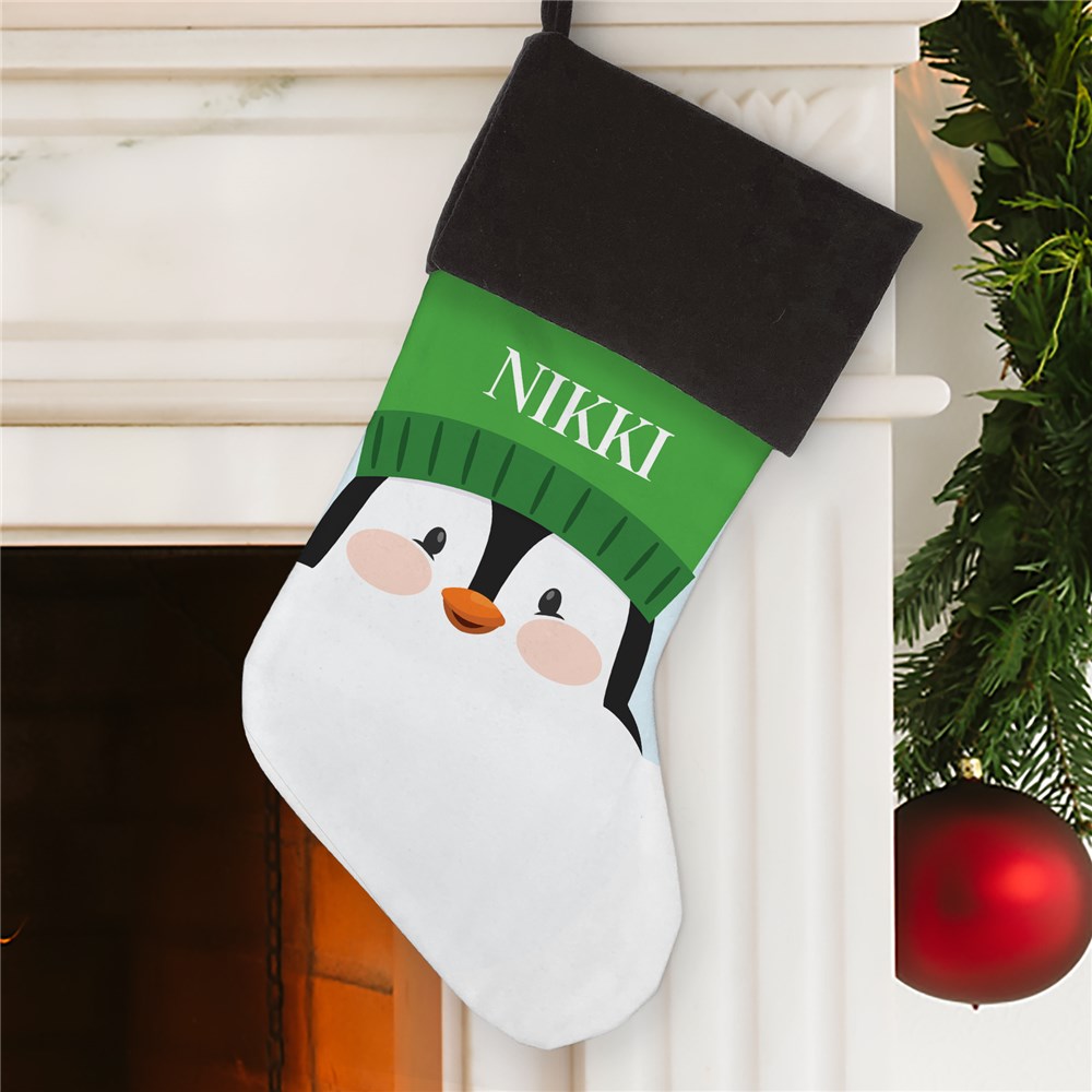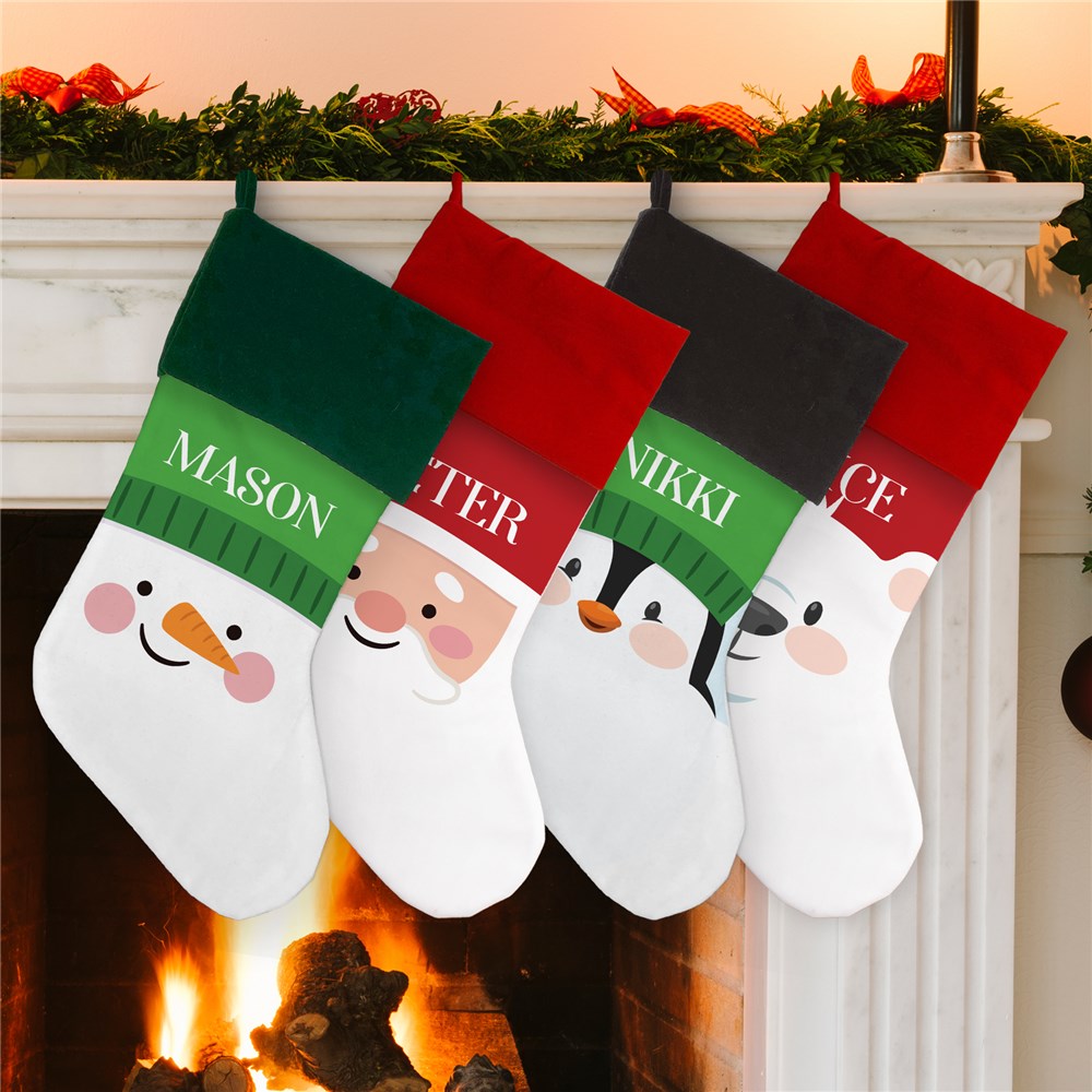 Our Personalized Christmas Character Stocking can be customized with your choice of penguin, Santa, snowman, or polar bear with any name.