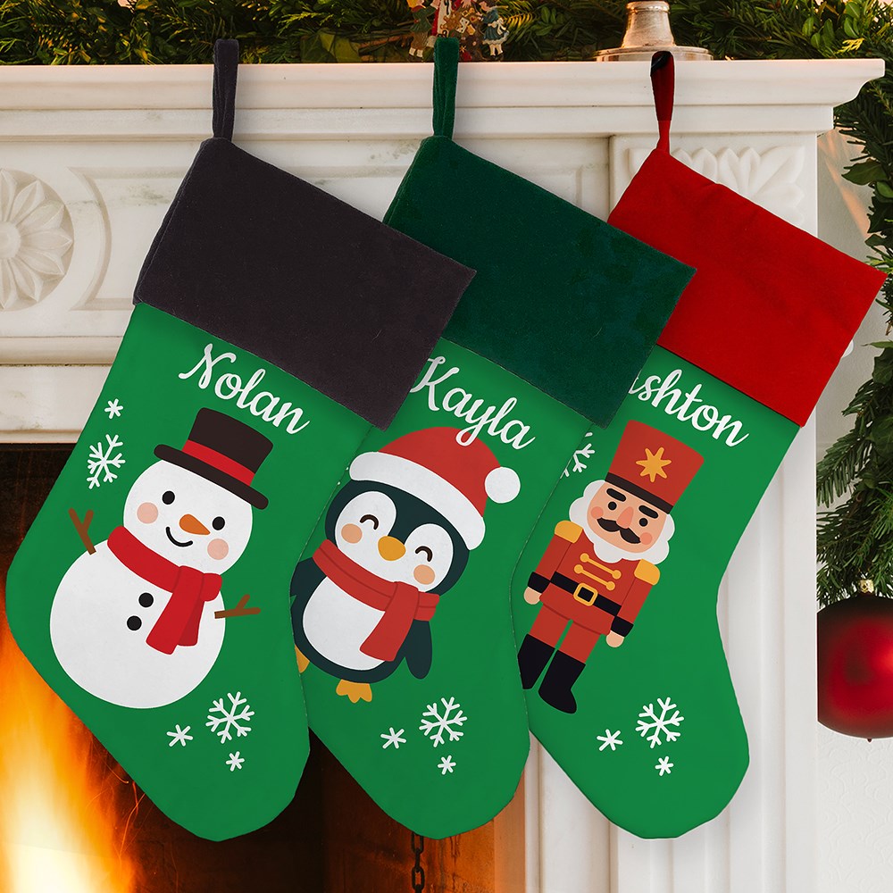 Celebrate the magic of Christmas with our Personalized Christmas Character Stocking! Each stocking showcases a fun and festive holiday character — Santa, Reindeer, Elf, Snowman, Penguin, or Nutcracker — bringing cheer to your mantel with bold colors and playful designs.