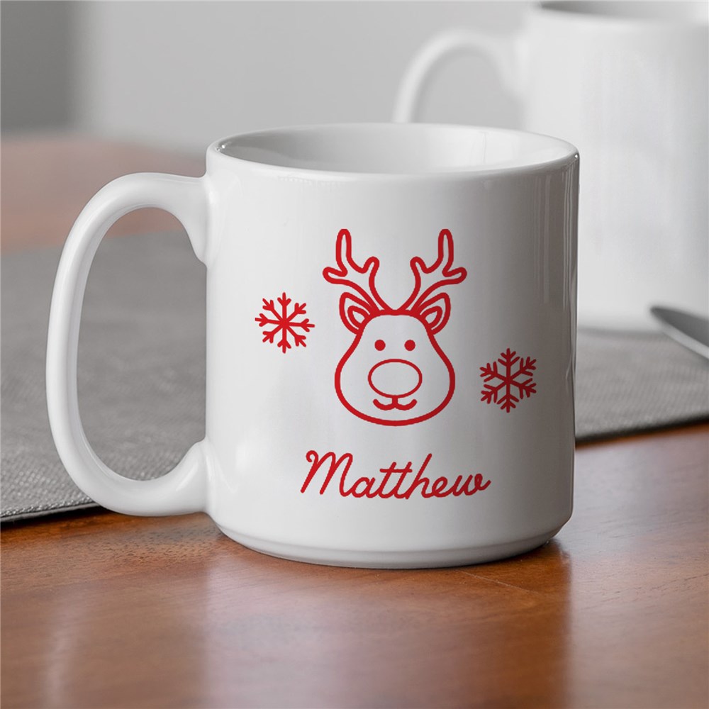 Personalize this Christmas mug with your choice of design color, icon and any custom message line.