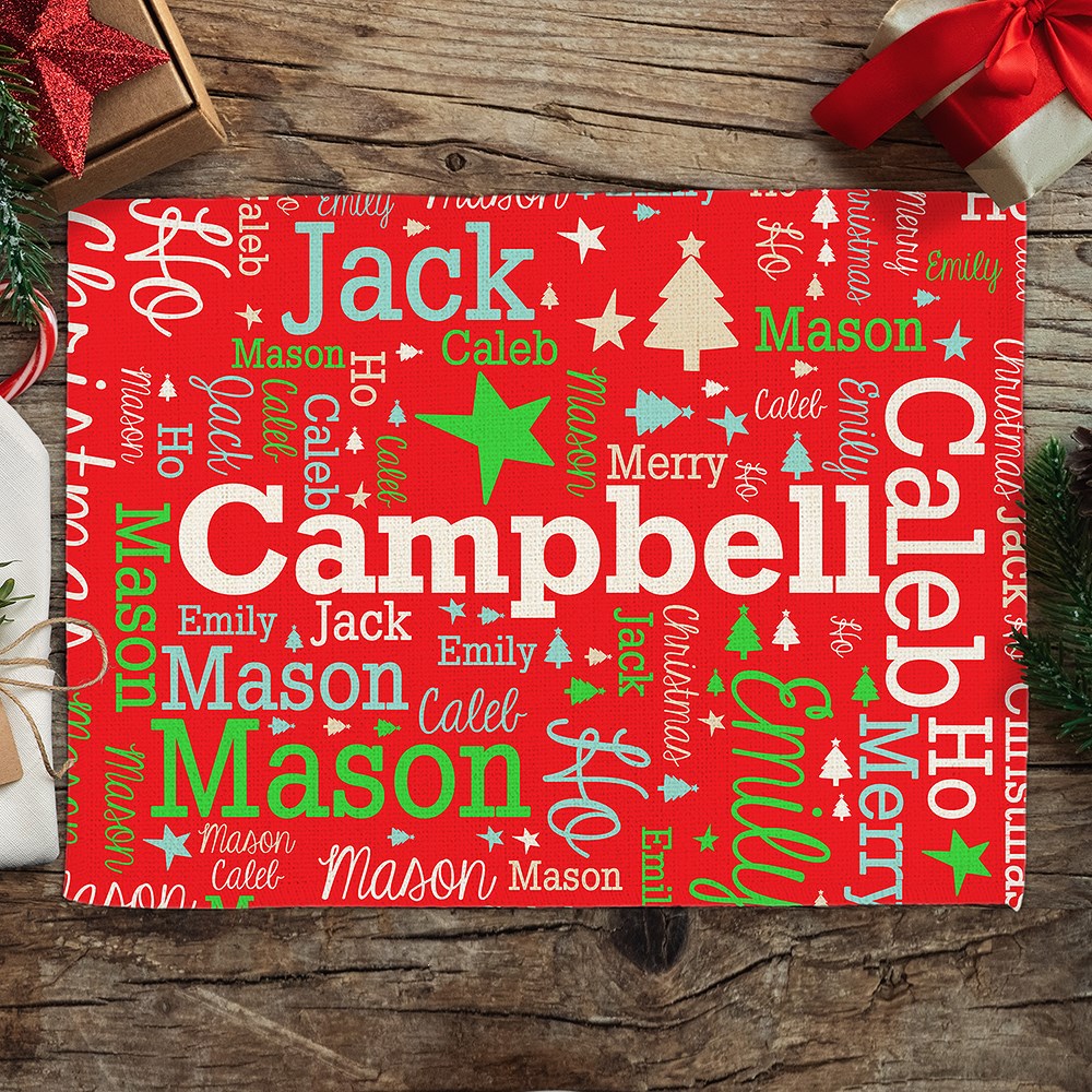 Our Personalized Christmas Word Art Linen Placemat is a festive and customizable placemat for the holiday season.