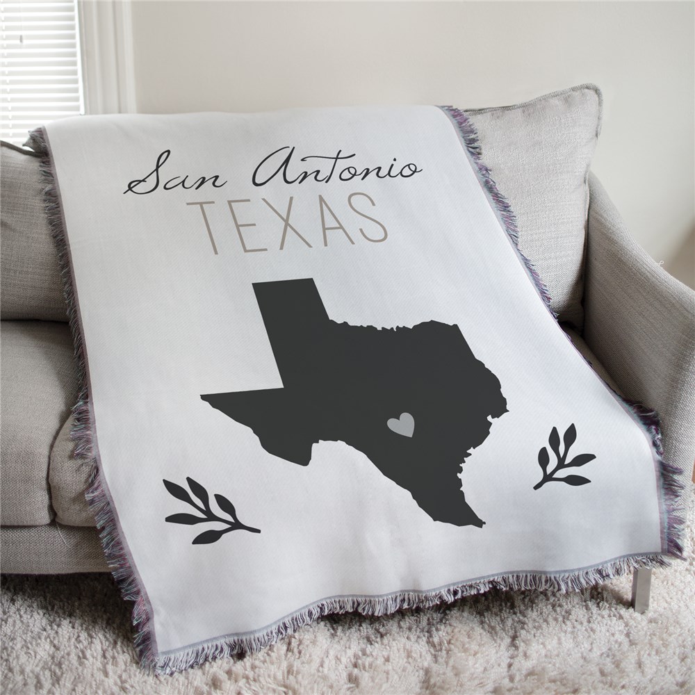 Create a custom blanket showing off your city and state pride with our large Personalized City And State Symbol 50x60 Afghan Throw.