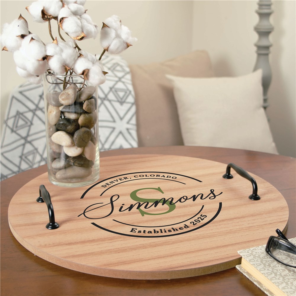 Personalized City State And Family Name Round TrayPersonalized City State And Family Name Round TrayPersonalized City State And Family Name Round Tray