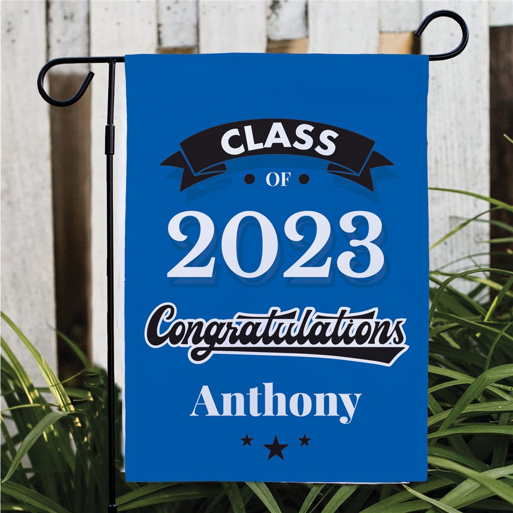 Show how proud you are of their achievements with our Personalized Class of Congratulations Garden Flag.