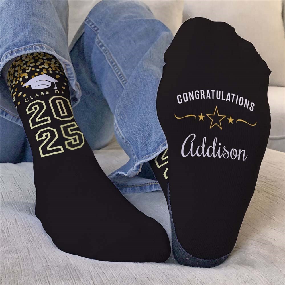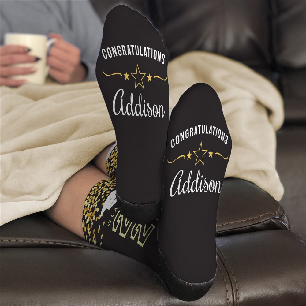 Our Personalized Class Of Graduation Crew Socks will be perfect to wear to celebrate your big achievement!