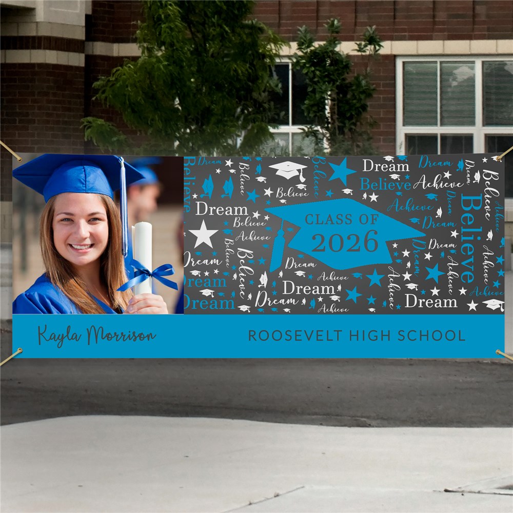 This fun Personalized Class Of Graduation Word-Art Banner is ideal for any grad party.