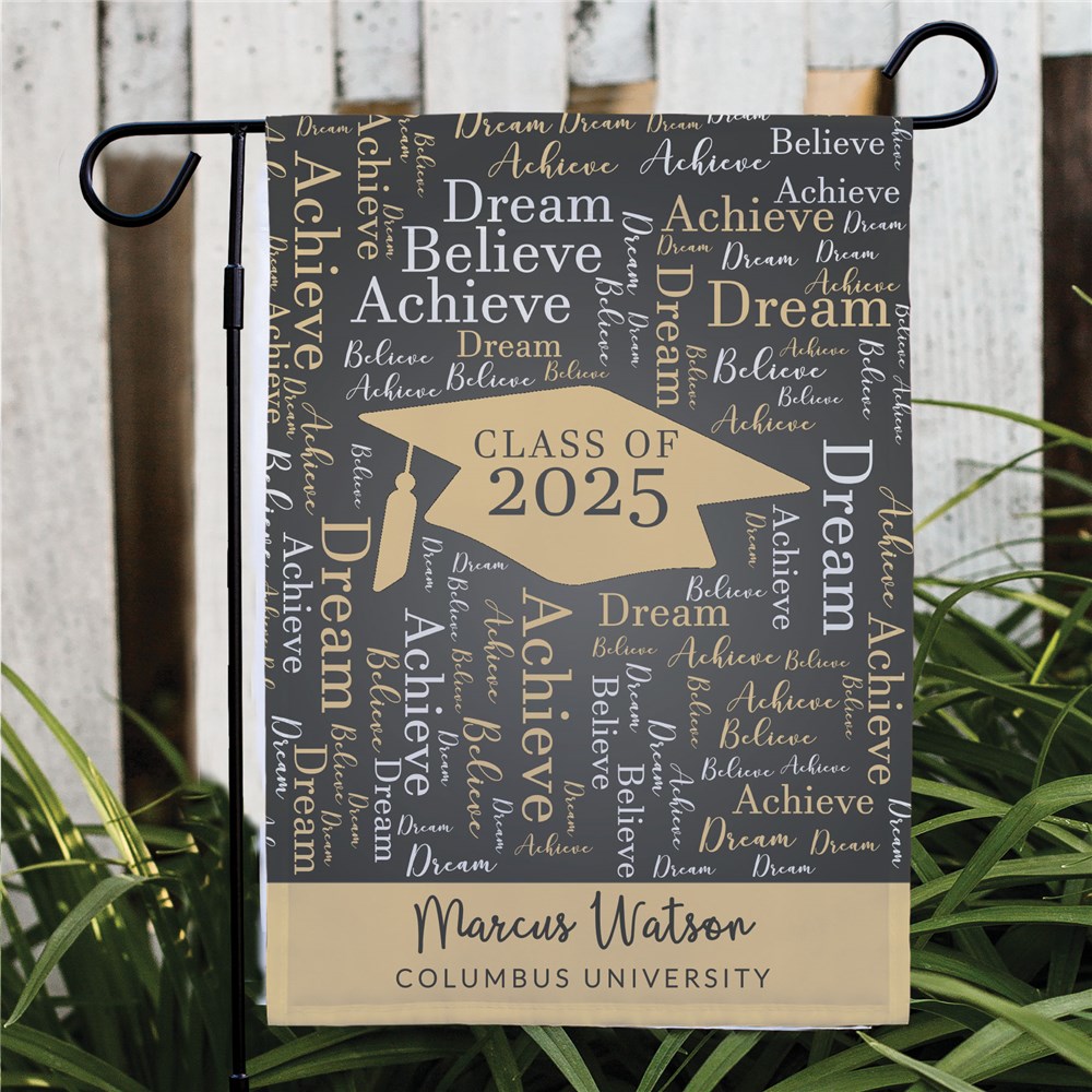 A Personalized Class Of Graduation Word-Art Garden Flag is a great way to announce the accomplishments of any grad.Using our