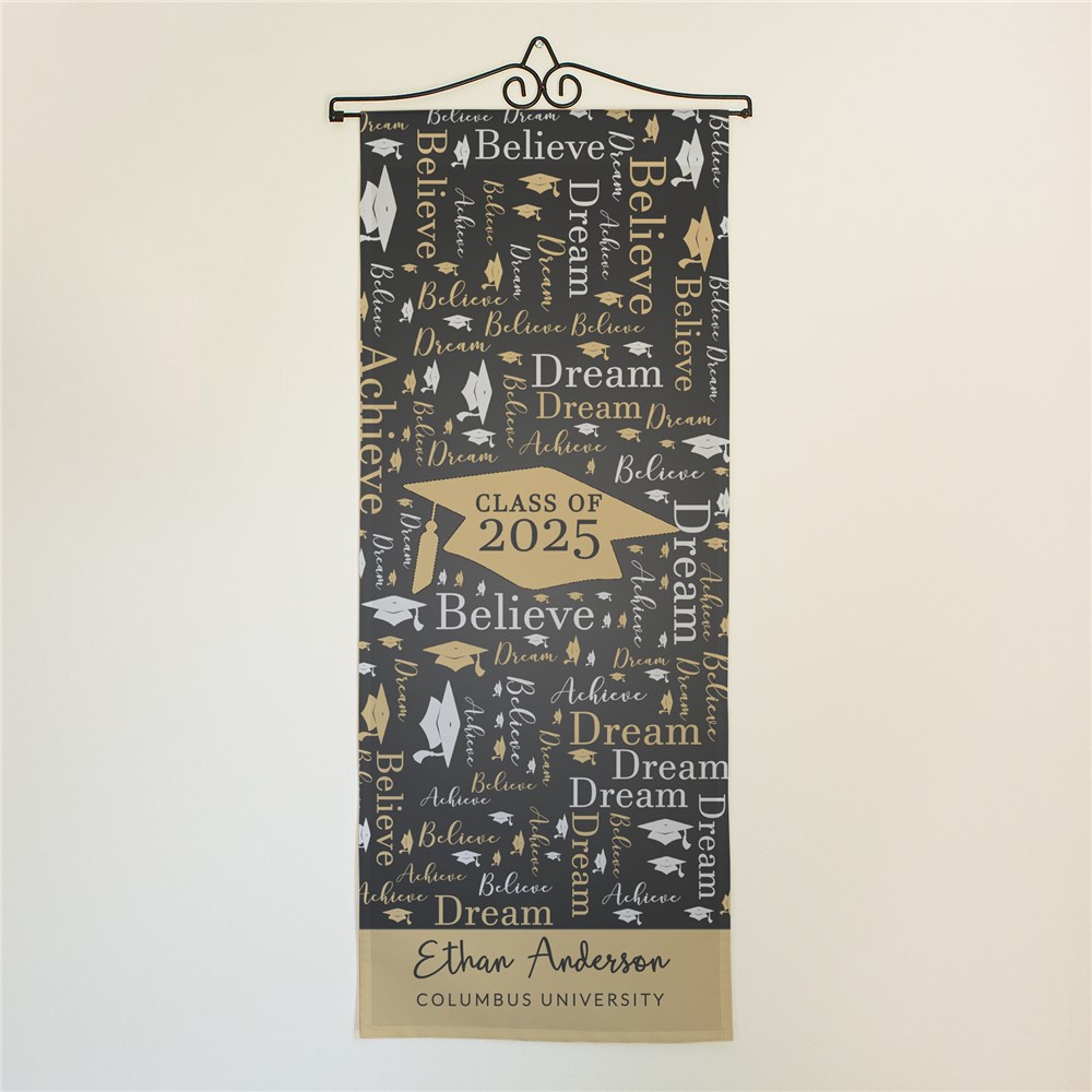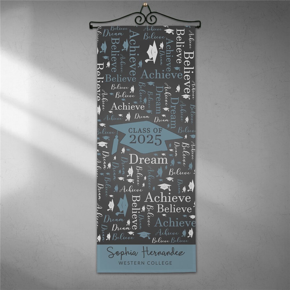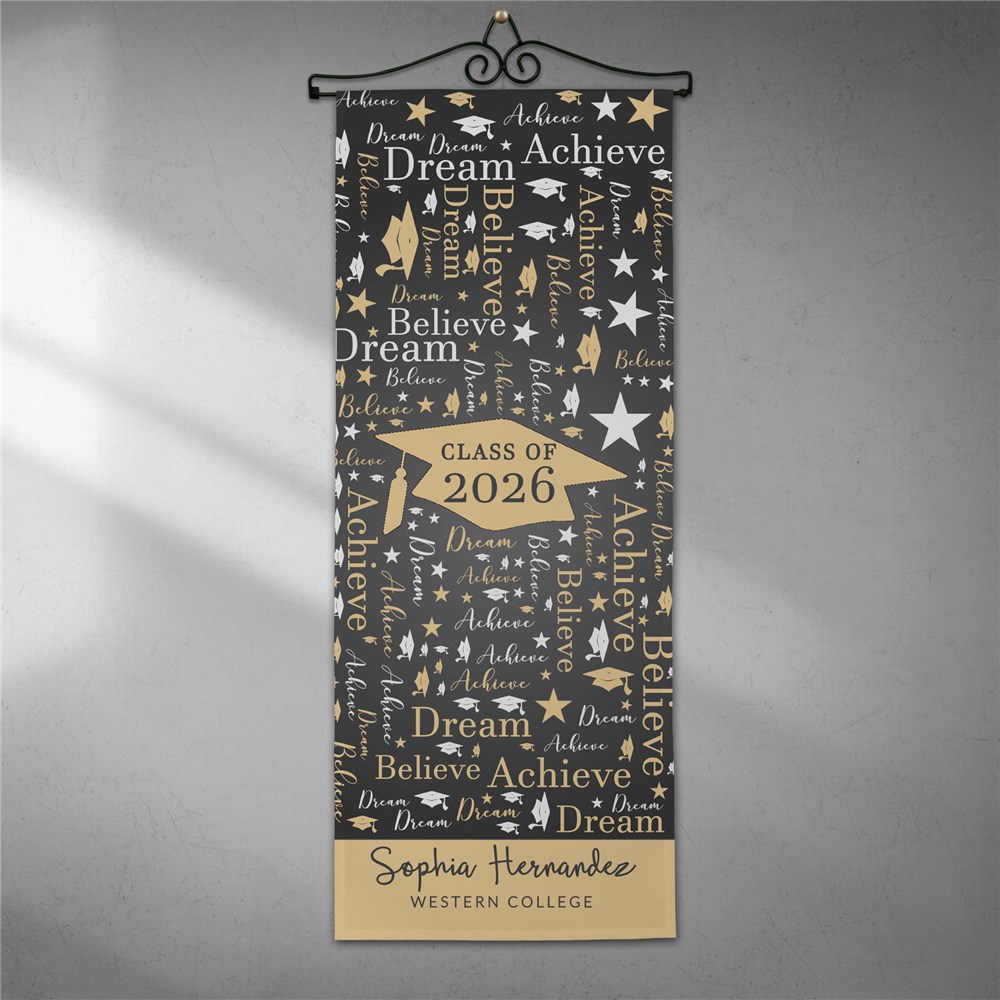 Announce to everyone your child has graduated by displaying our Personalized Class Of Graduation Word-Art Wall Hanging.Using our word art tools, create this wall decor by adding any year, name, and custom message. Plus any words you'd like to see in the word art design.