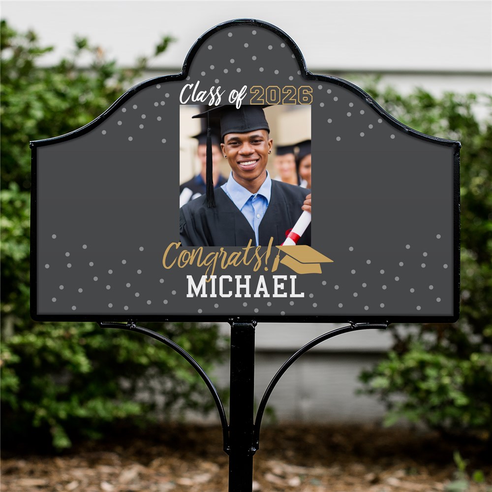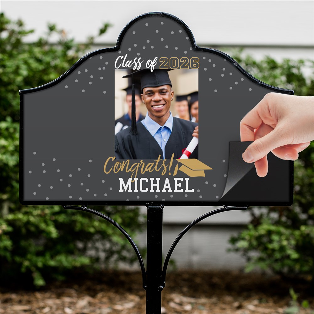 Decorate any graduation party with our Personalized Class Of With Confetti Magnetic Yard Sign.