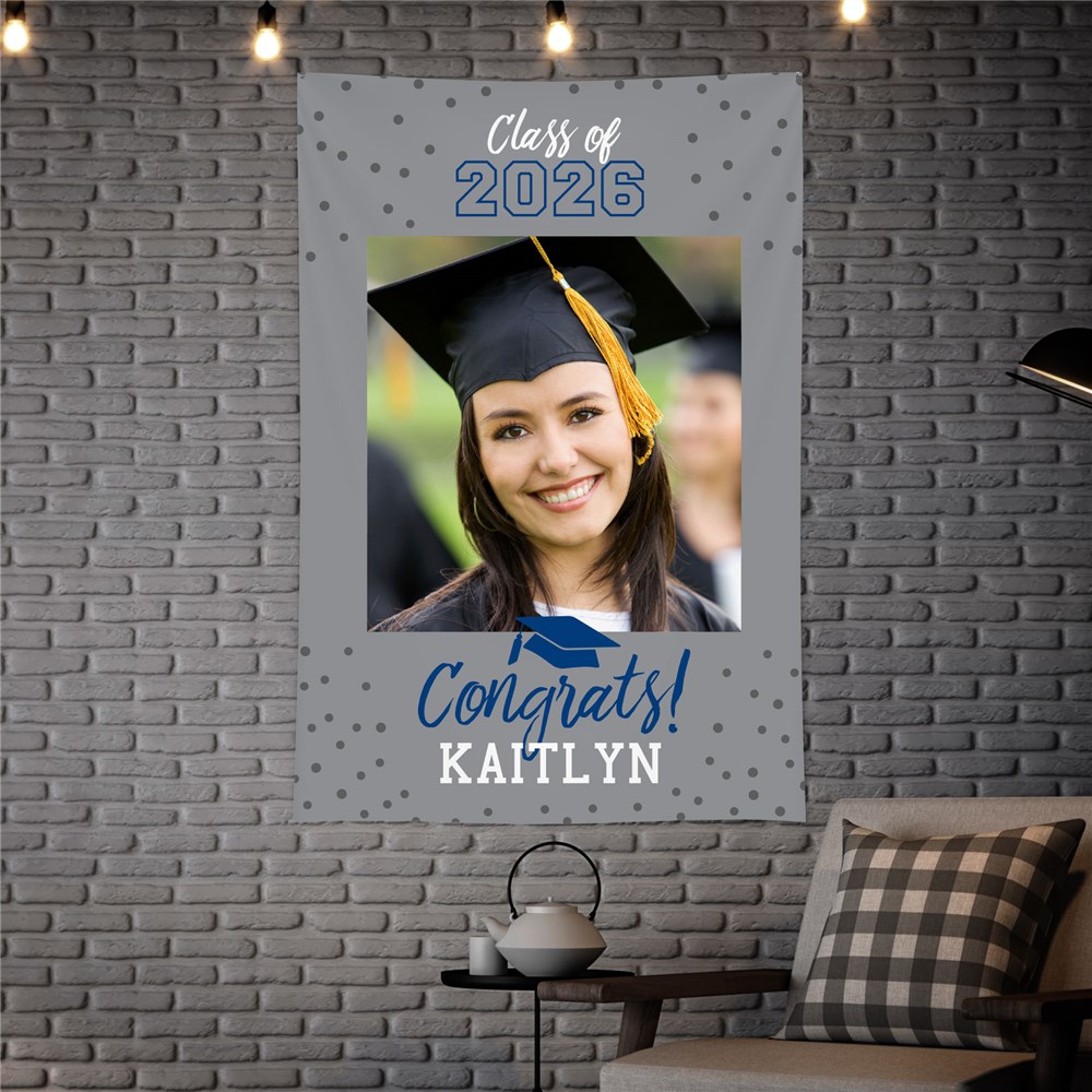 Create a personalized graduation wall tapestry that’s as unique as your graduate. Upload any photo, choose your school colors, add the graduation year, and include any name for a one-of-a-kind keepsake. Perfect for party backdrops, photo ops, or as a lasting memento of their big day!