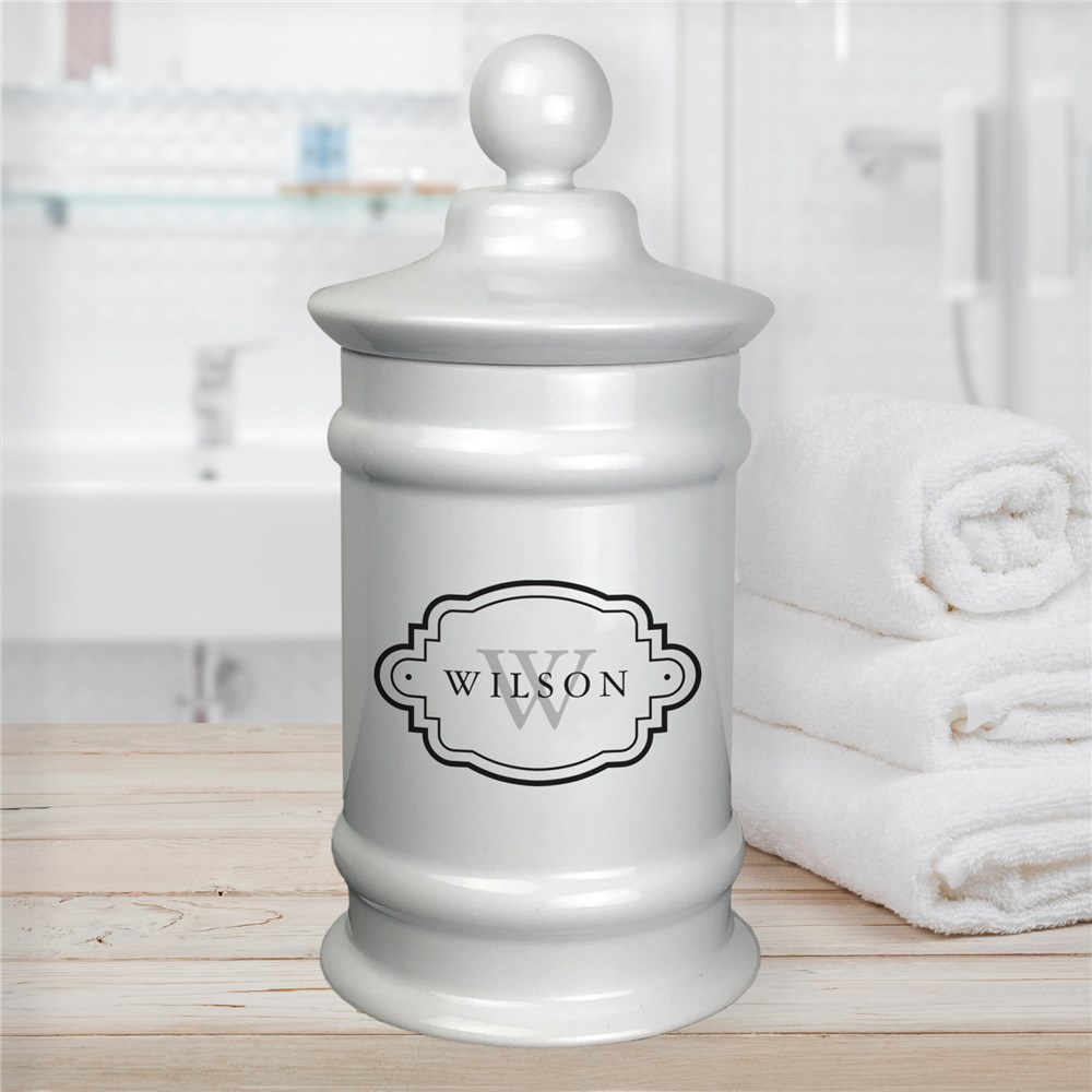 Add some stylish storage to your bathroom with our Personalized Classic Name & Initial in Frame Apothecary Jar.