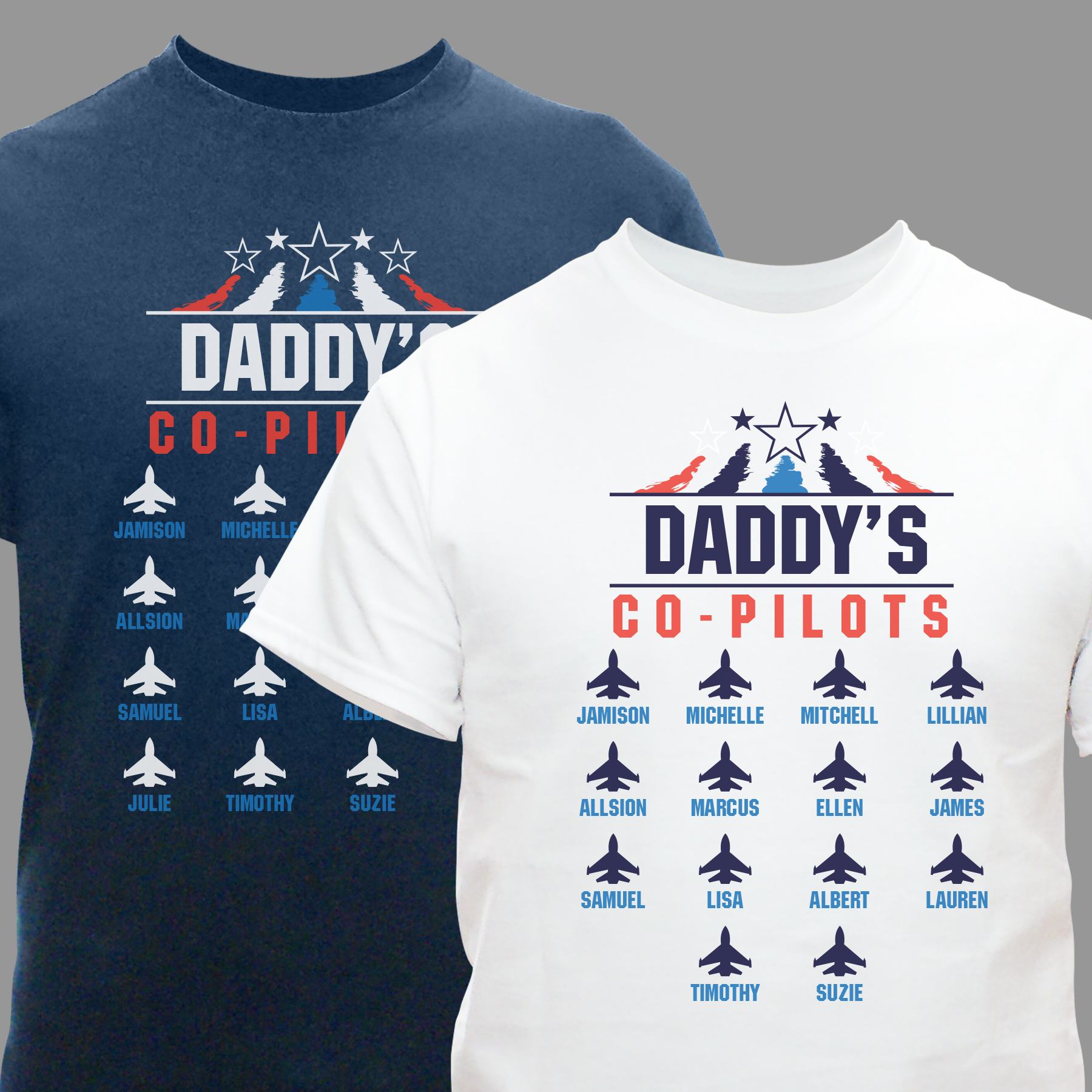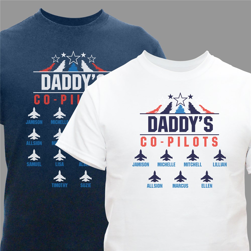 Create a one of a kind gift for Him this Father's Day with our Personalized Co-Pilots T-Shirt. Our Personalized Shirts For Father's Day may be customized with any title and up to 16 names of all your favorite co-pilots! Makes a great Father's Day gift for Grandpa, Uncle or Dad!