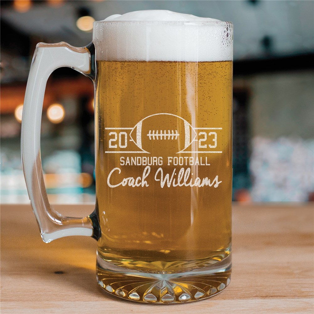 Personalized Coach Gifts like this glass mug are customized with any choice of sport, year, custom message and any name of your choice.