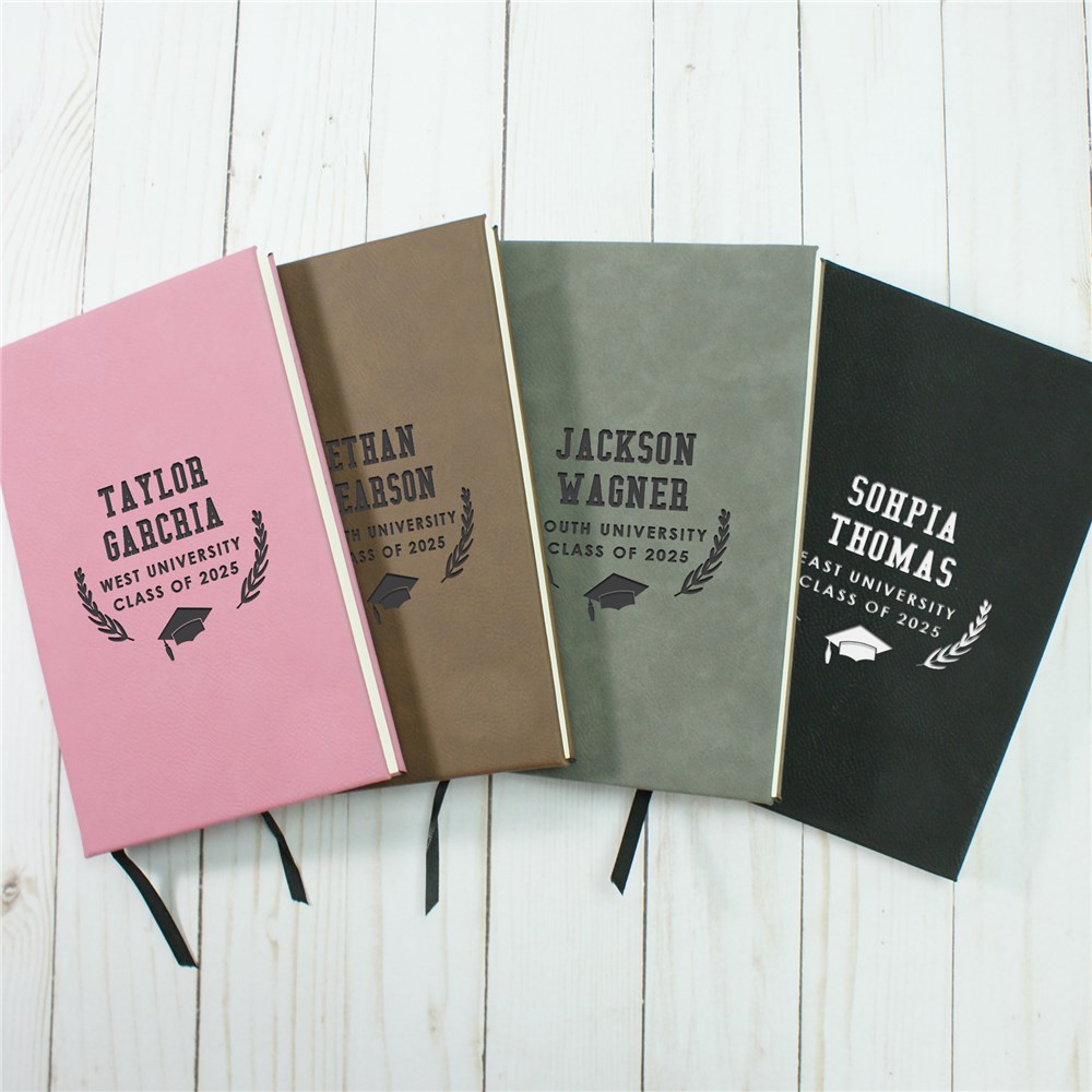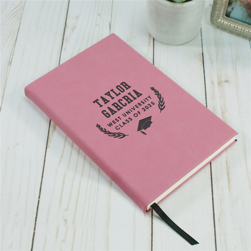 Take lots of notes during class with our Personalized Collegiate Grad Leather Journal!