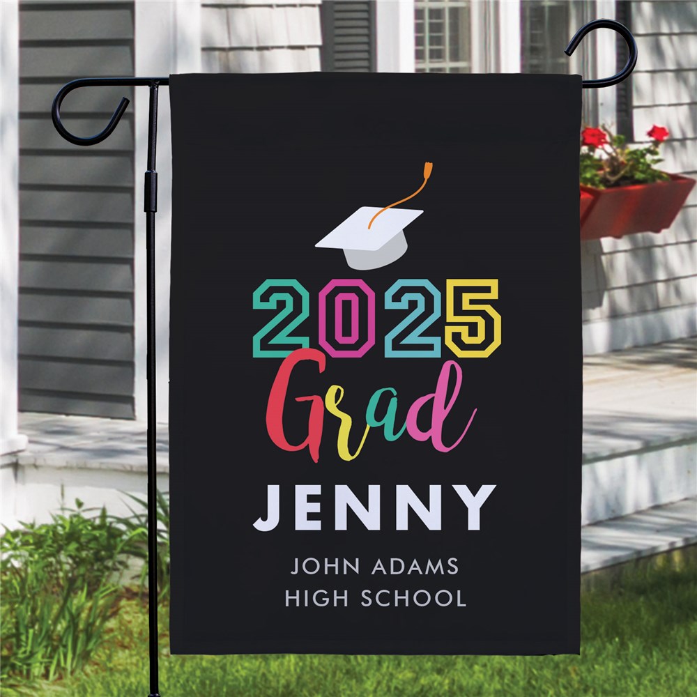 Our Personalized Colorful Grad Garden Flag will make the perfect addition to your Graduation Celebration.