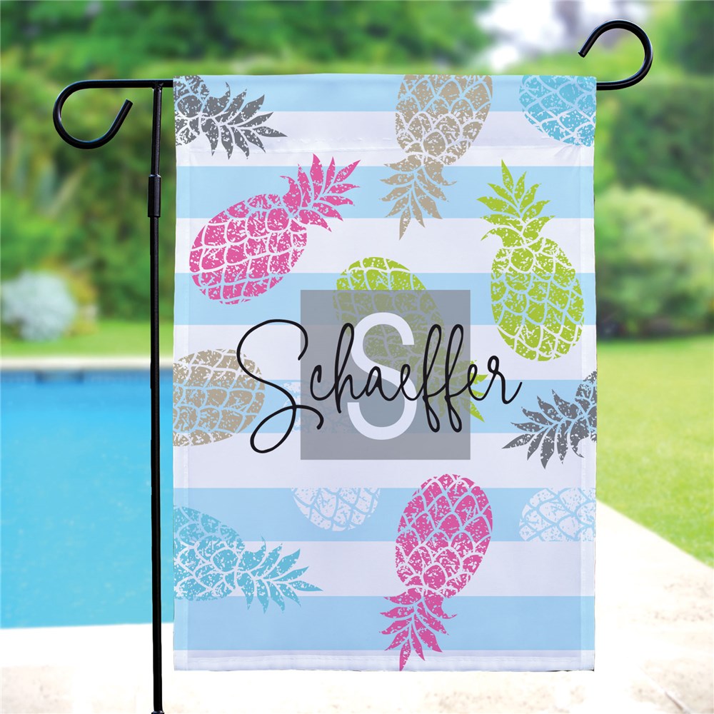 Enhance your curb appeal for summer with our Personalized Colorful Pineapples Garden Flag!