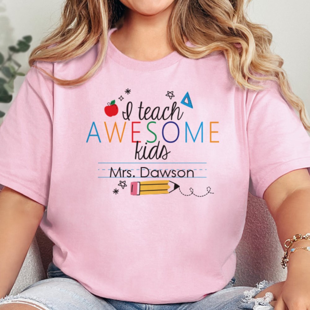 Any proud teacher will love wearing our Personalized Colorful Teacher T-Shirt in or out of the classroom!