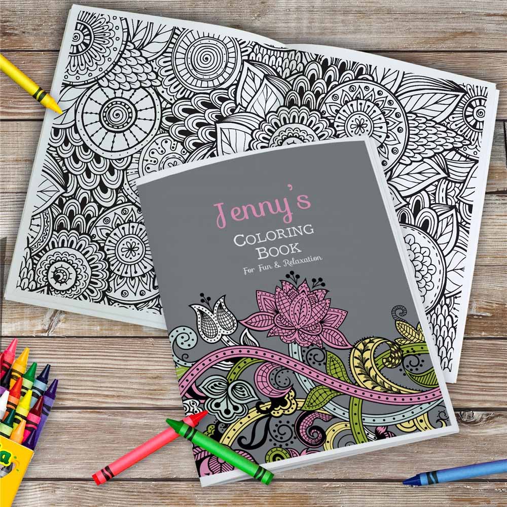 Blow off some steam and unwind with a coloring book that is personalized for you. Featuring a variety of designs, this adult coloring book makes a great gift idea for her.