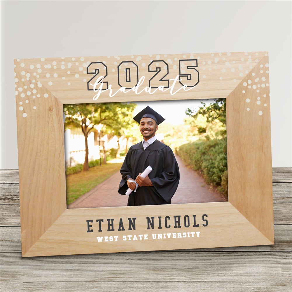 Showcase your senior photo with our Personalized Confetti Graduate Wood Frame.