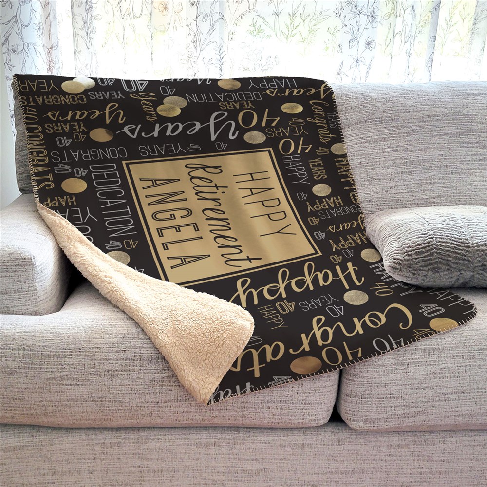 Make any retiree feel special with our Personalized Confetti Retirement Word Art Sherpa Blanket!