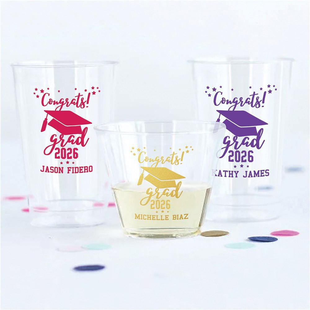 Celebrate your grad with these Personalized Congrats Grad Clear Plastic Cups.