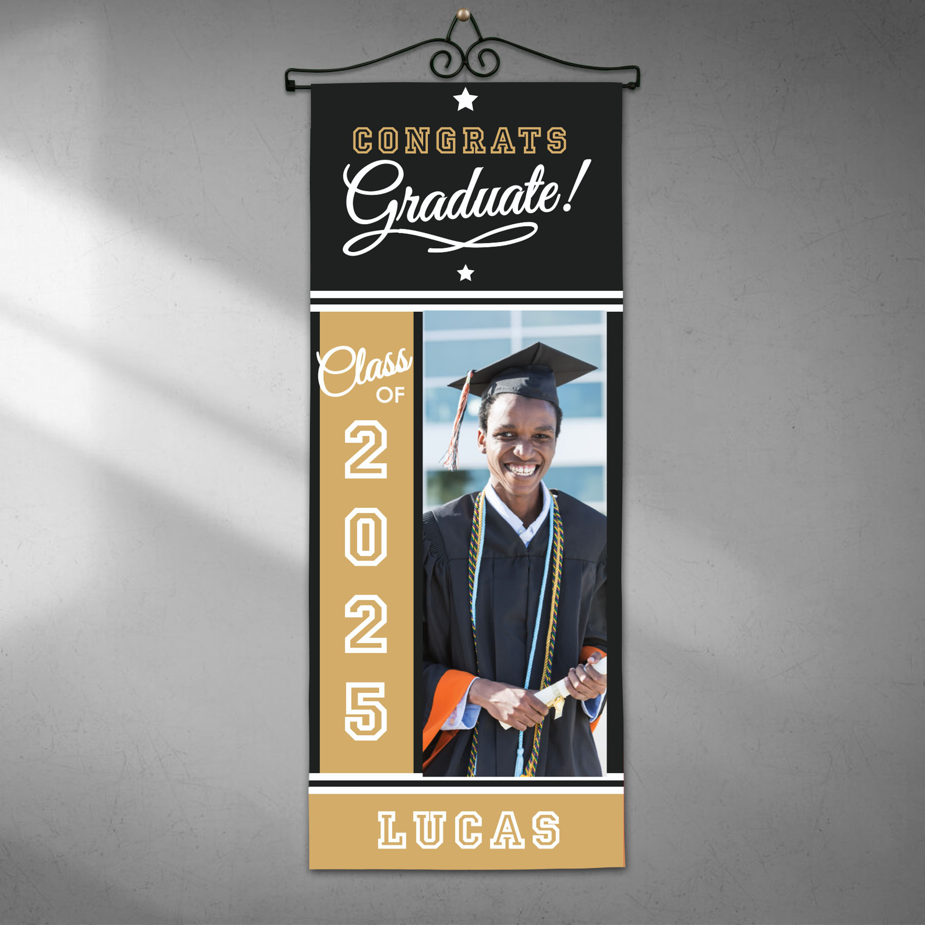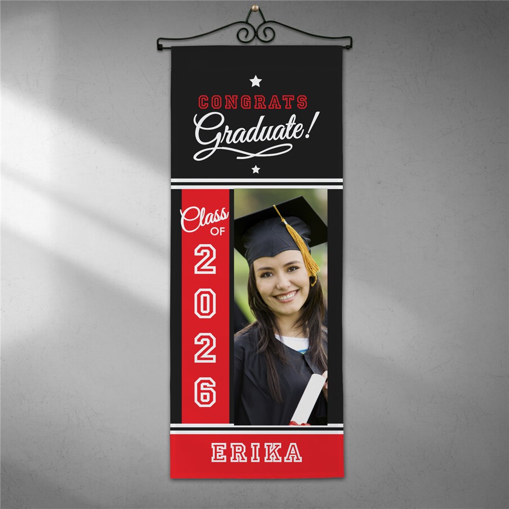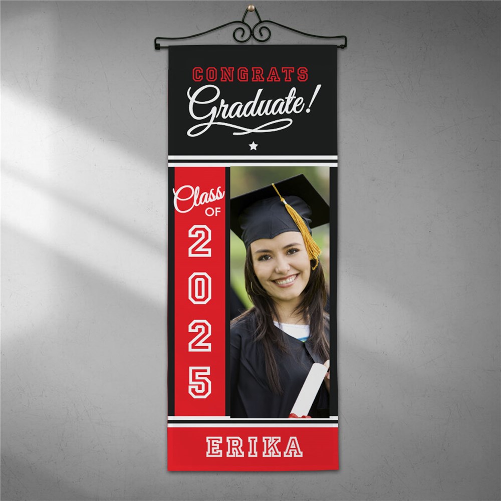 This Graduation Wall Hanging can be personalized with your choice of color, any photo, graduation year and name.