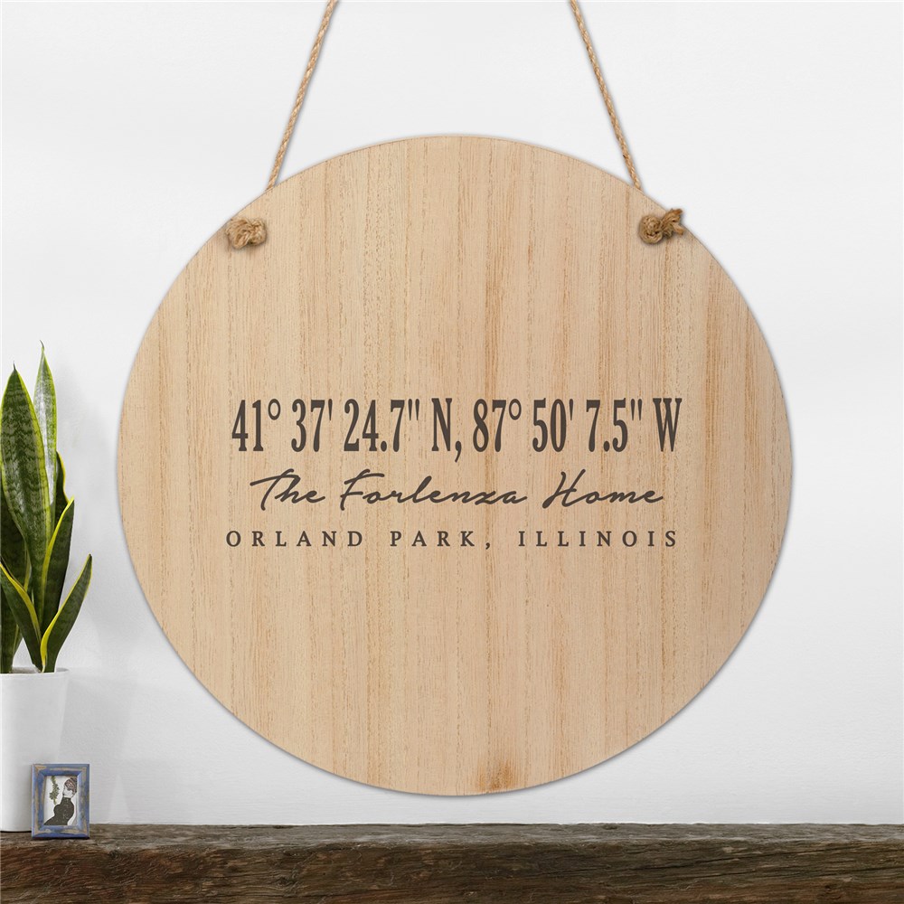 Give a housewarming gift made specially for them with our Personalized Coordinates Hanging Wall Sign.