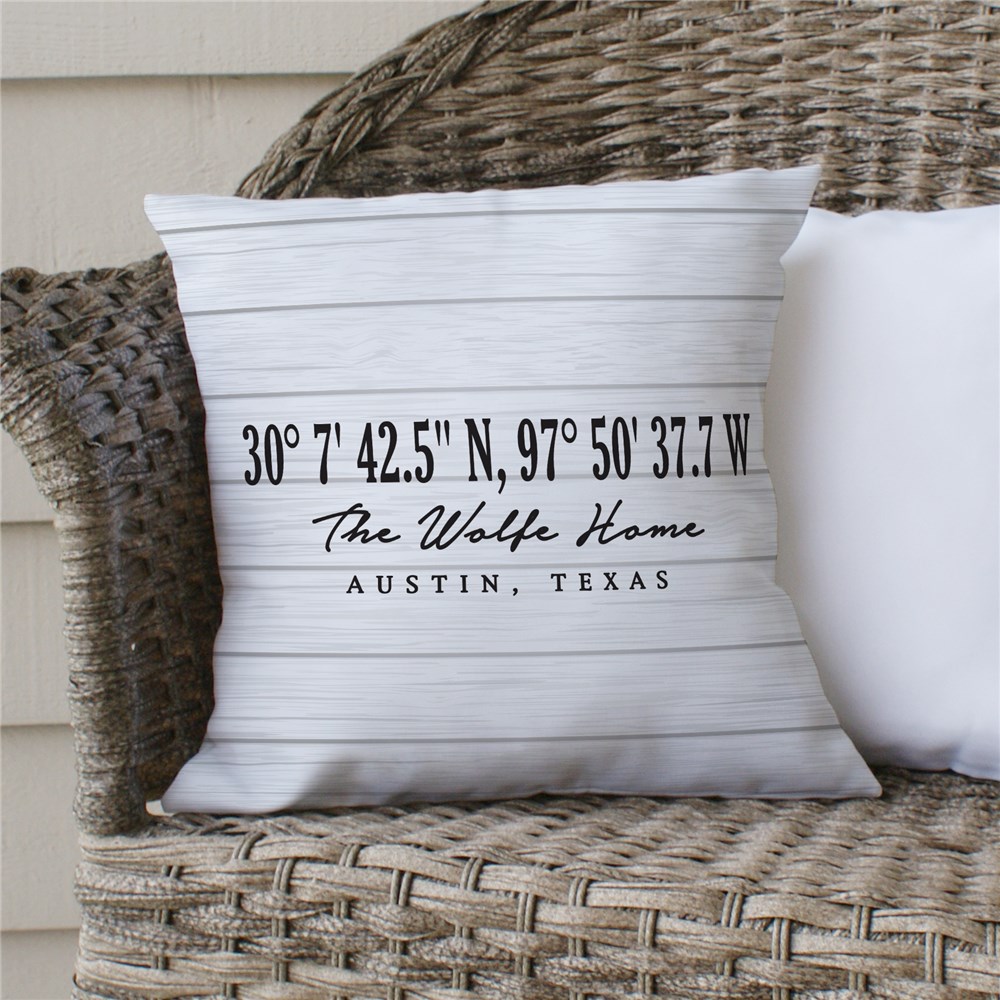 Displaying our Personalized Coordinates with White Wood Throw Pillow will add something special to your home decor.