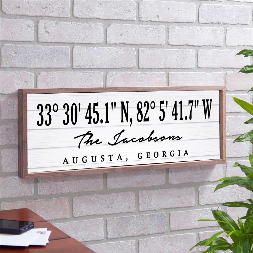 Complete your home decor with our Personalized Coordinates with White Wood Wall Sign, to display the coordinates of your favorite place.