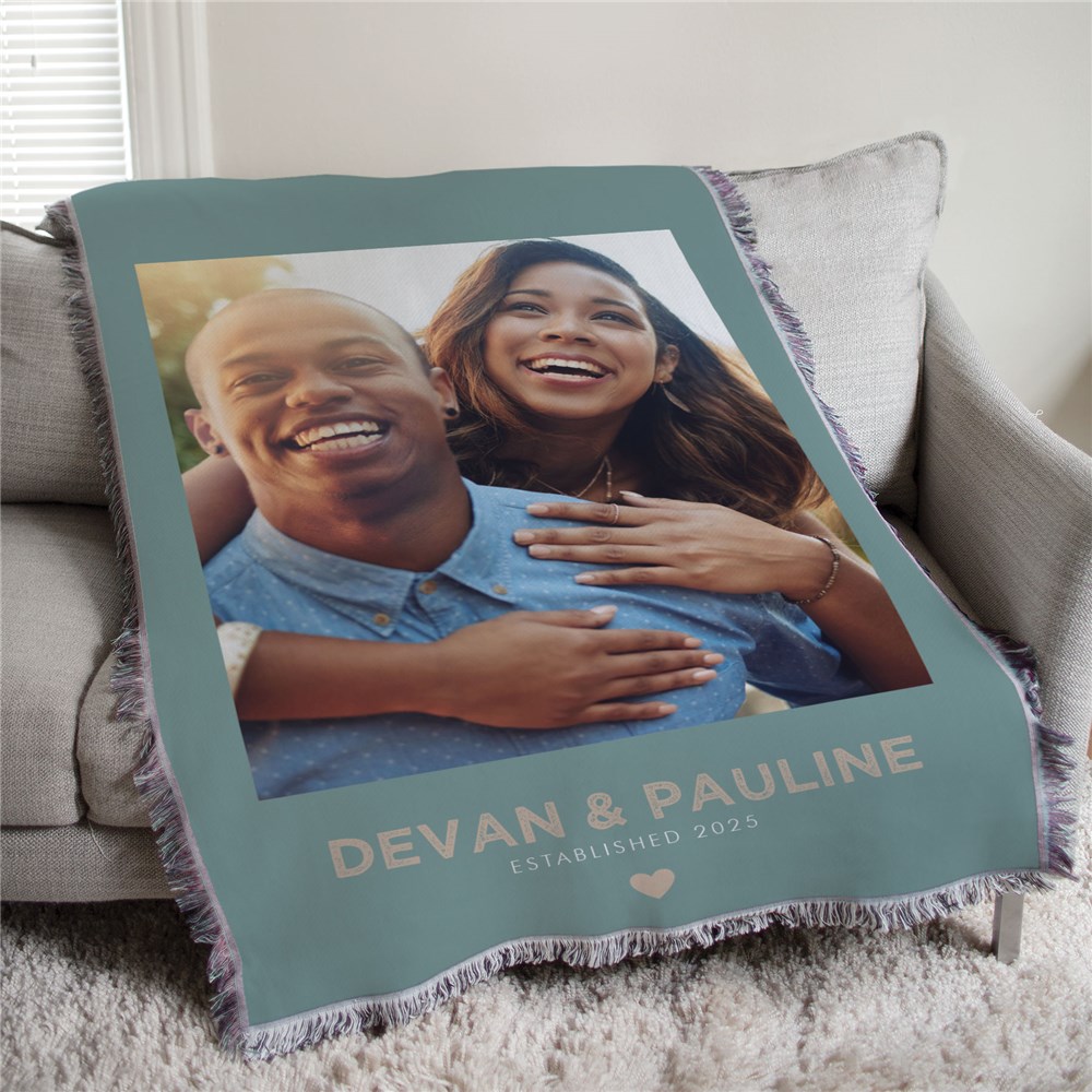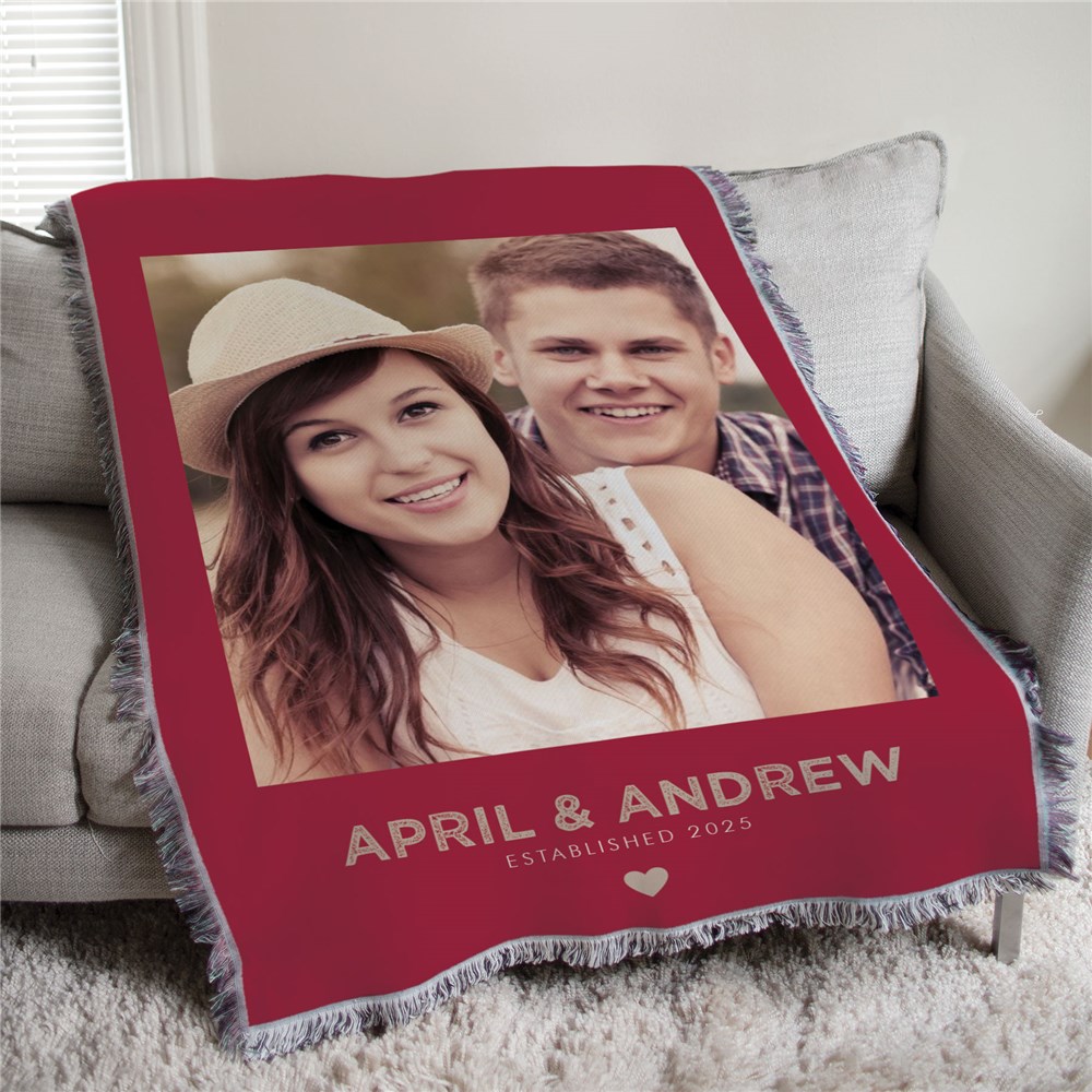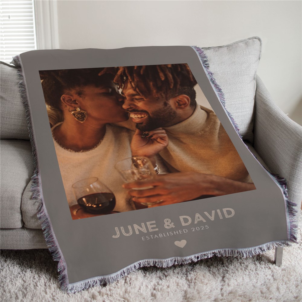 Curl up on the couch with your favorite person and your favorite Personalized Couples Photo Afghan Throw.