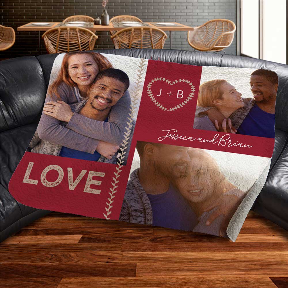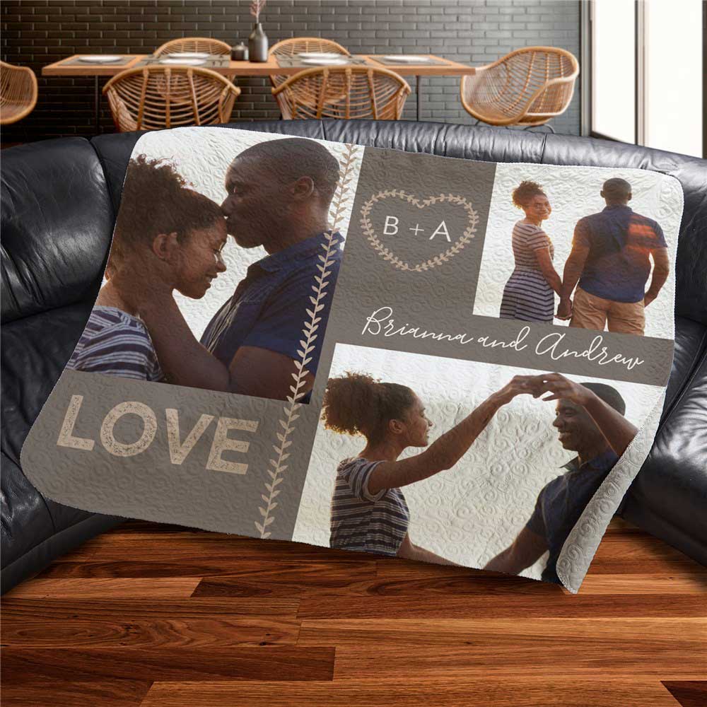 Our Personalized Couples Photo Quilted Blanket is a romantic gift featuring your favorite photos with your partner!