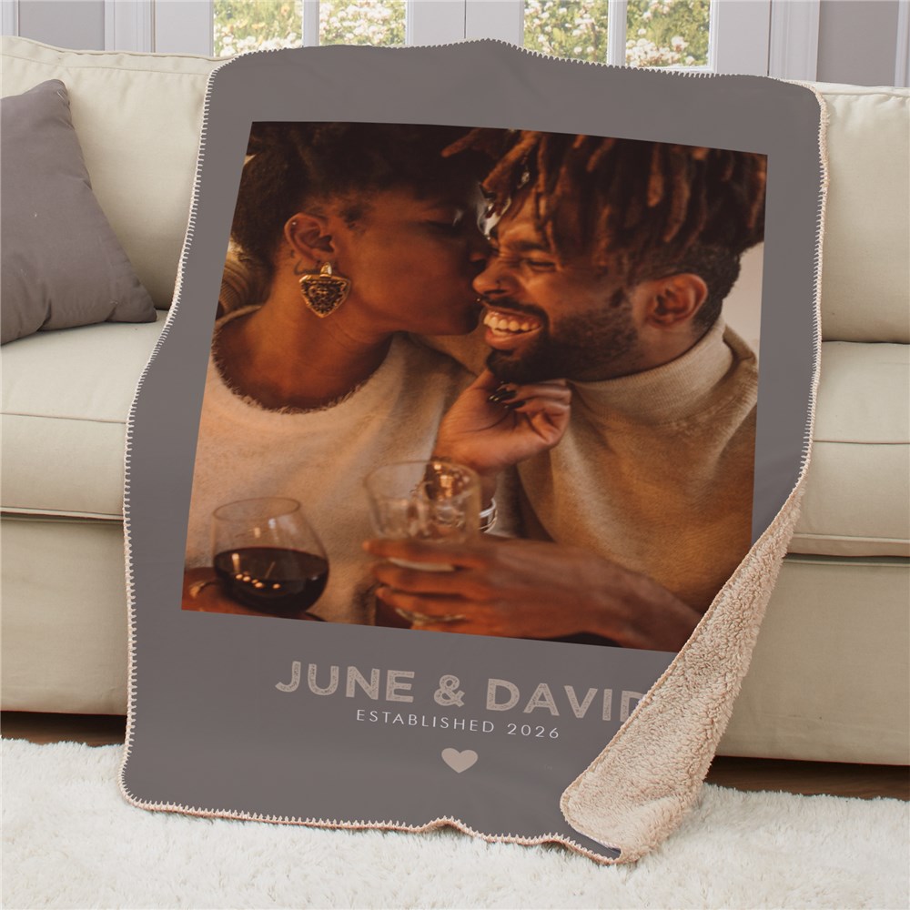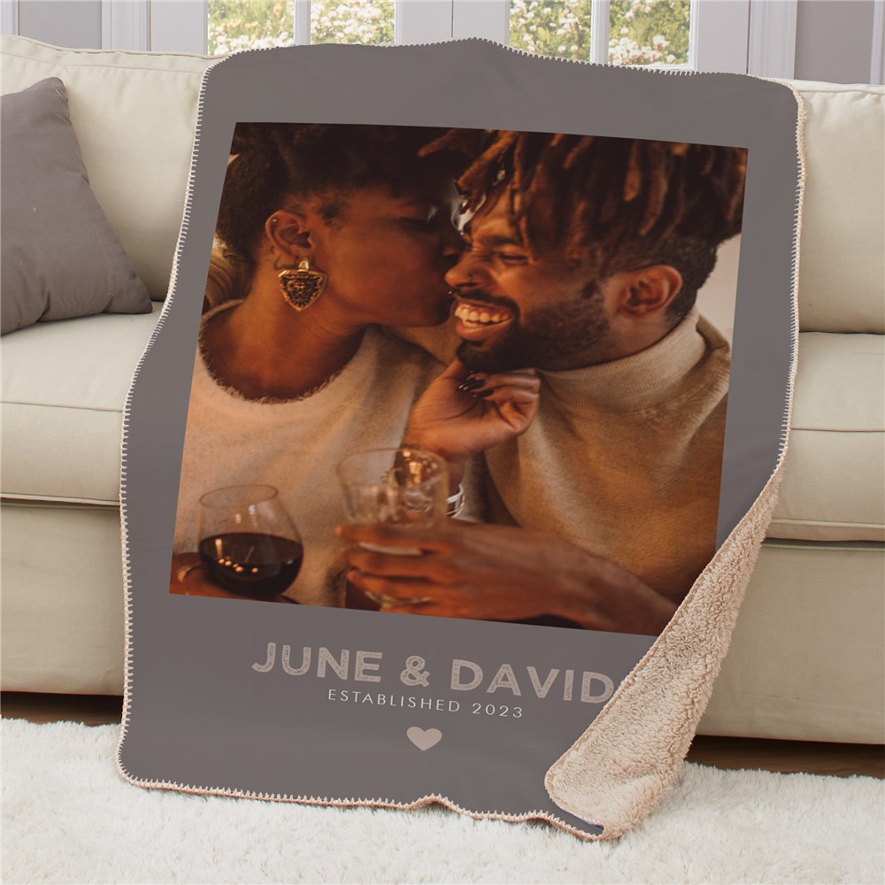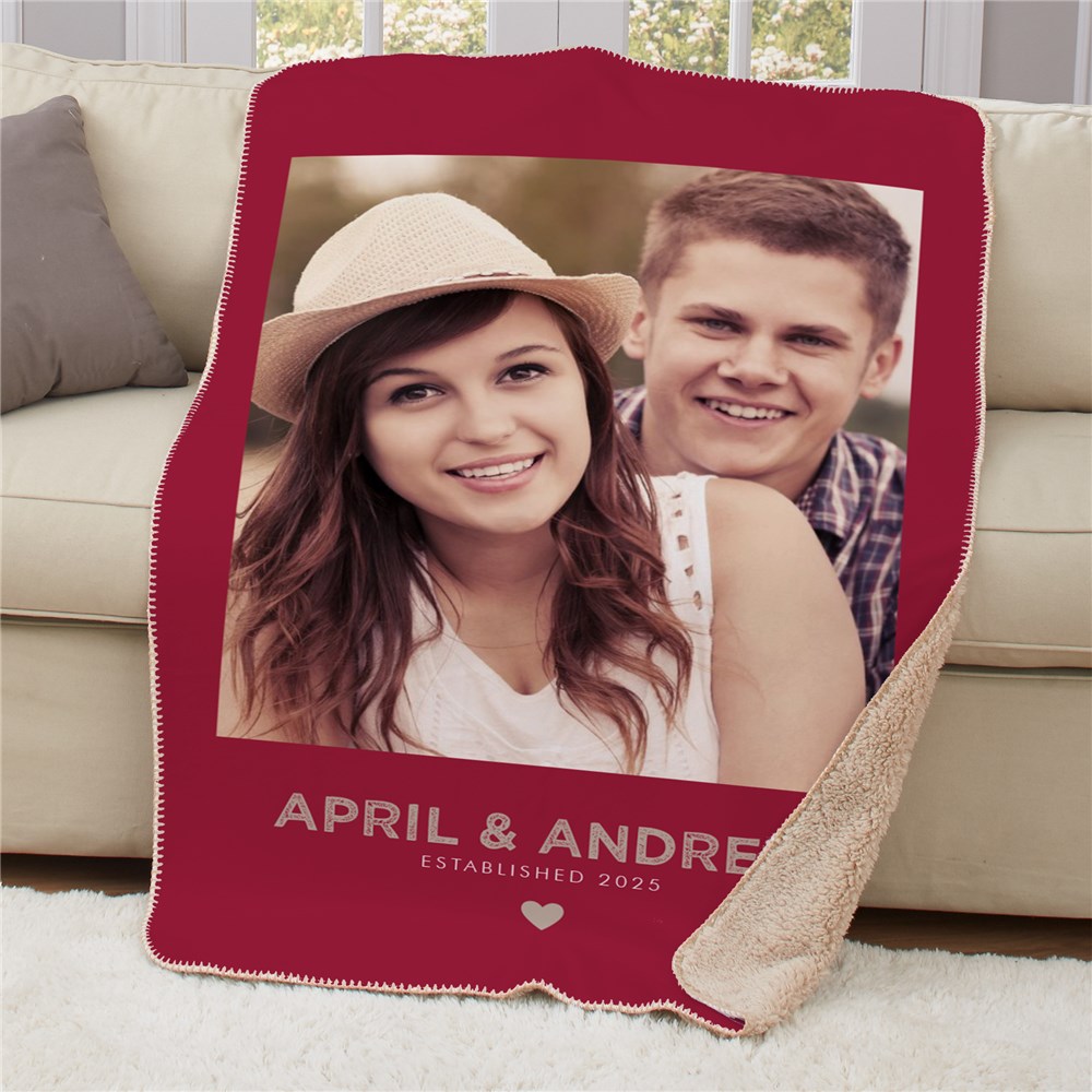 Curl up on the couch with your favorite person and your favorite Personalized Couples Photo Sherpa Blanket.